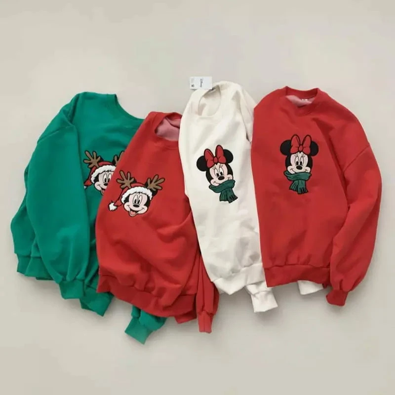 An oversized Christmas crewneck sweatshirt featuring Mickey Mouse + Minnie Mouse!
