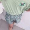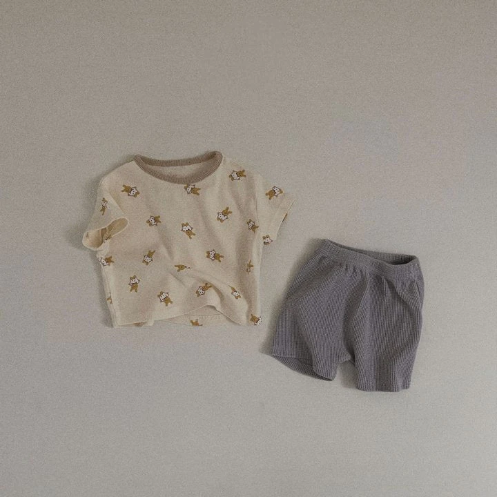 Comfy short sleeved bear print top and matching waffle shorts set.
