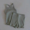 A sleeveless striped waffle romper featuring a slight v neck opening.