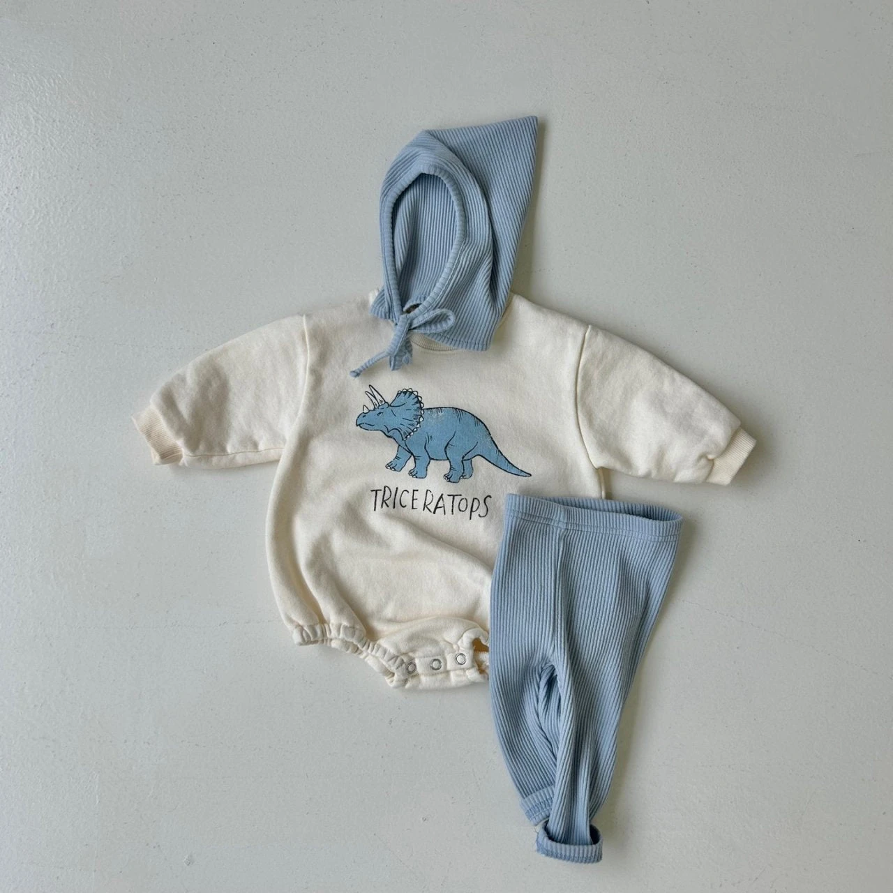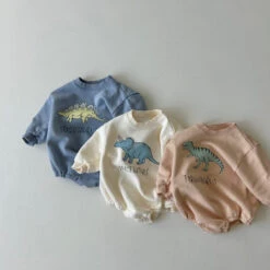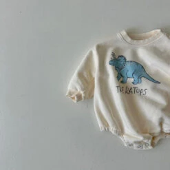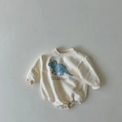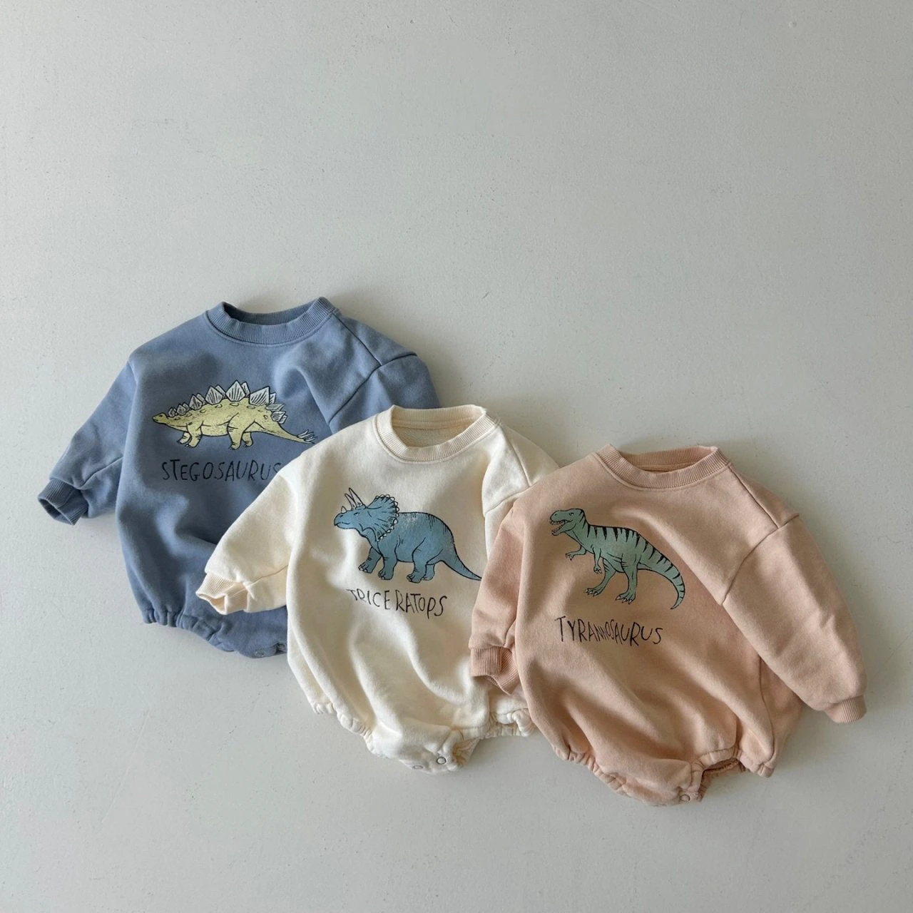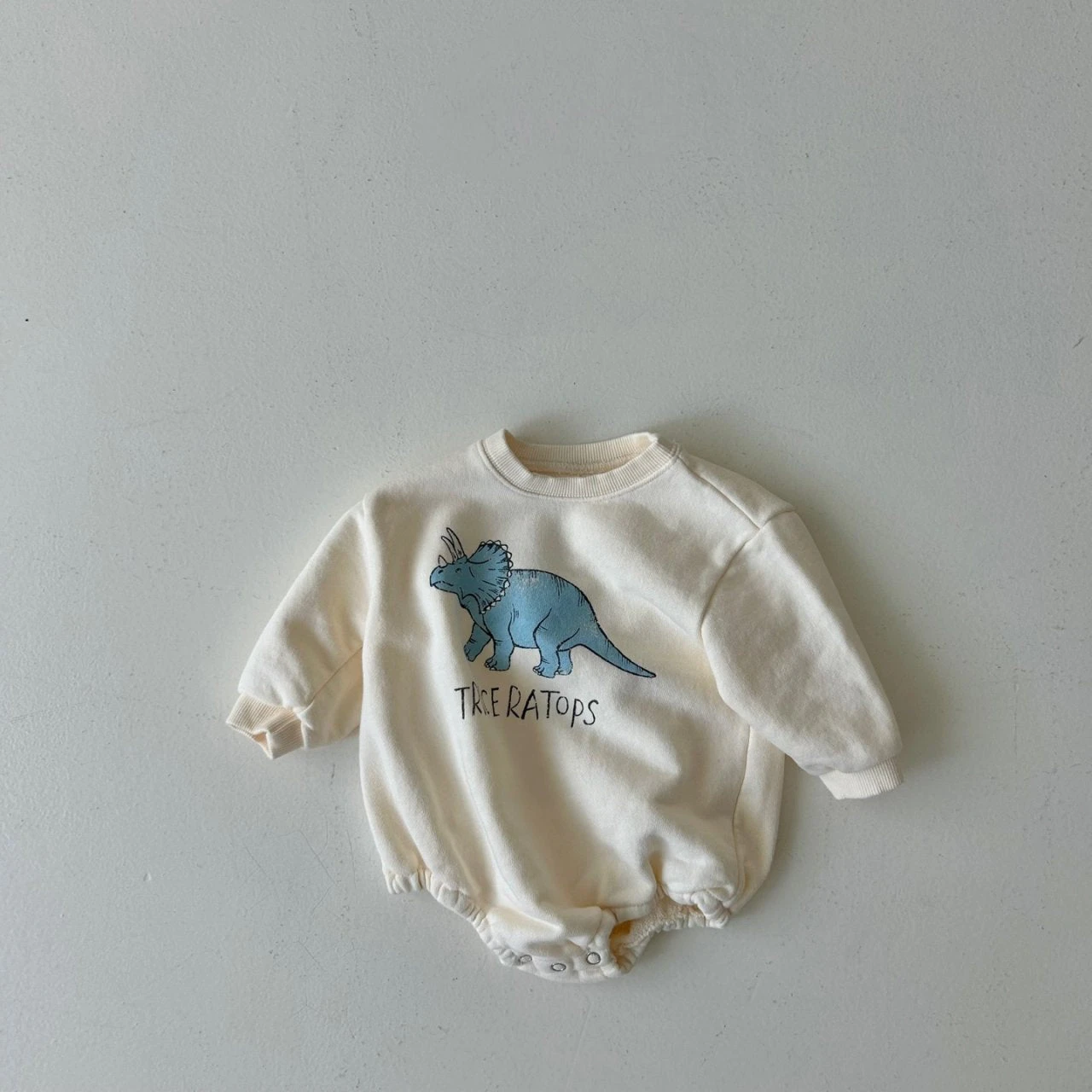 Our best-selling crewneck sweatshirt romper featuring a Dinosaur graphic on the front.