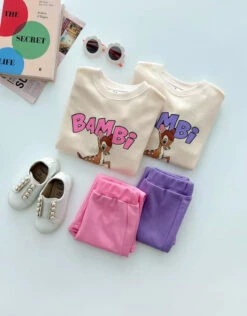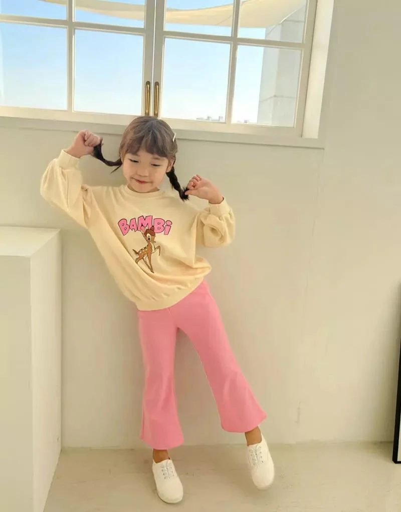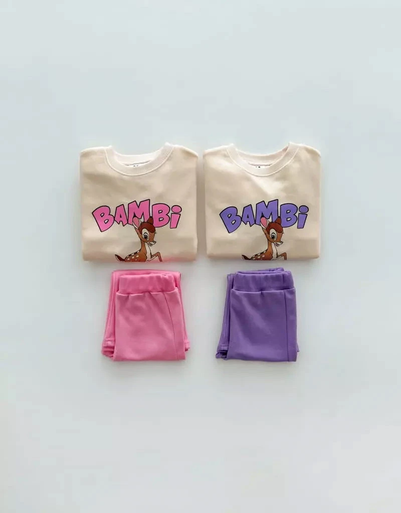 A cozy lightweight crewneck featuring Bambi and matching cropped flared pants for a complete look.