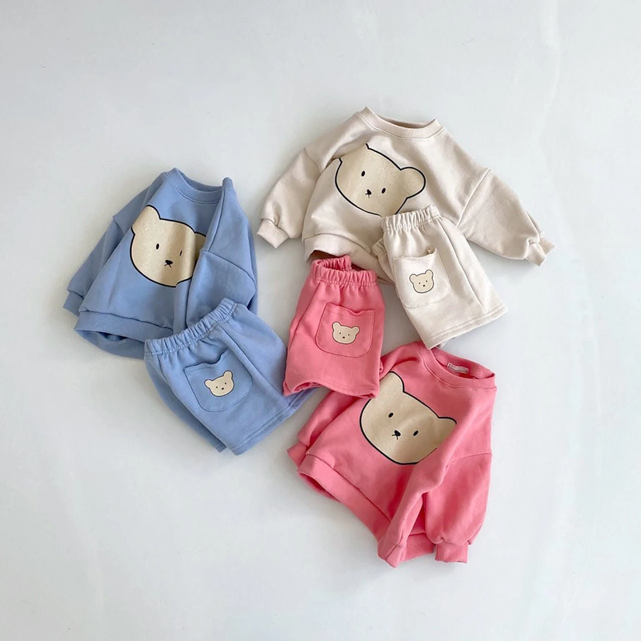 A cute oversized sweatshirt top and bottom set featuring the cutest bear print.