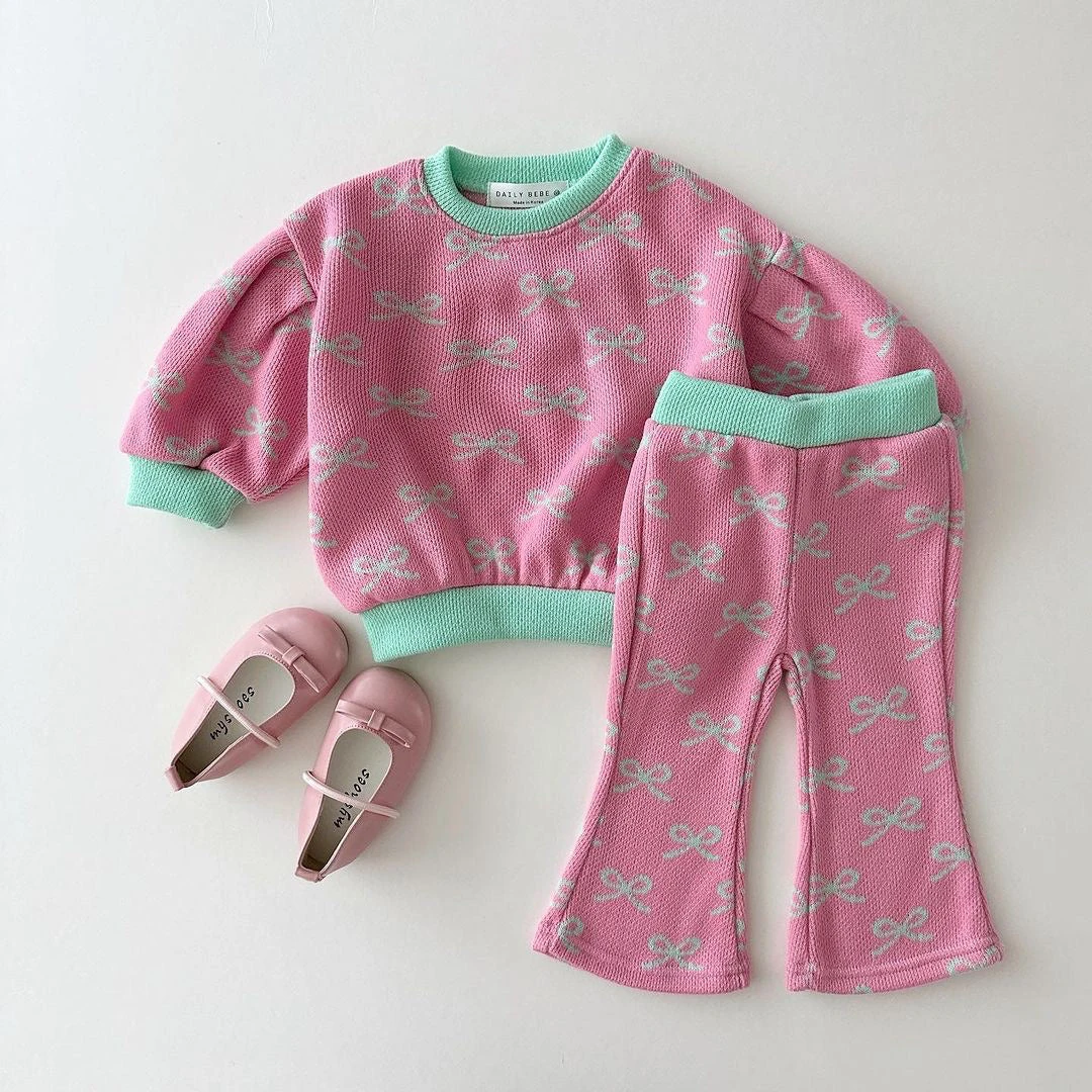A long sleeved jacquard set featuring matching bootcut pants for the stylish babes.
