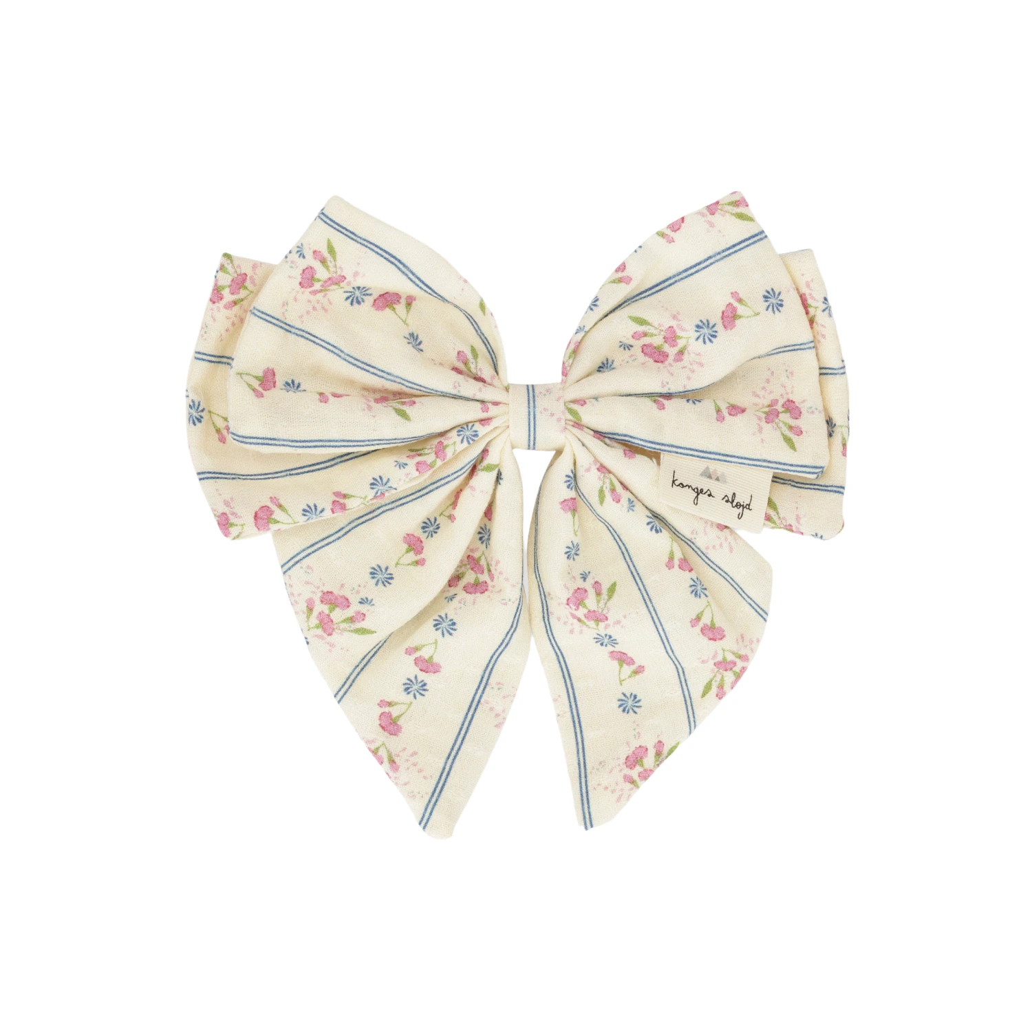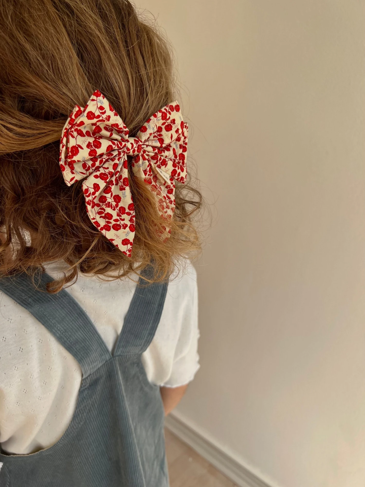 A beautiful single large hair clip made in spring steele with a large cotton bow added to the clip.