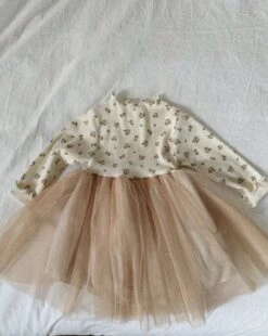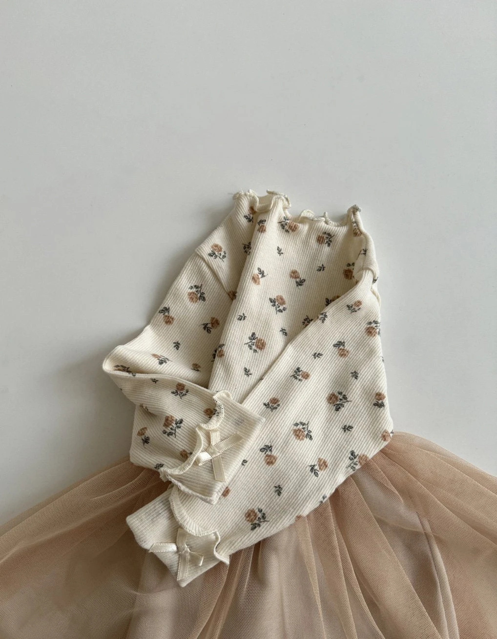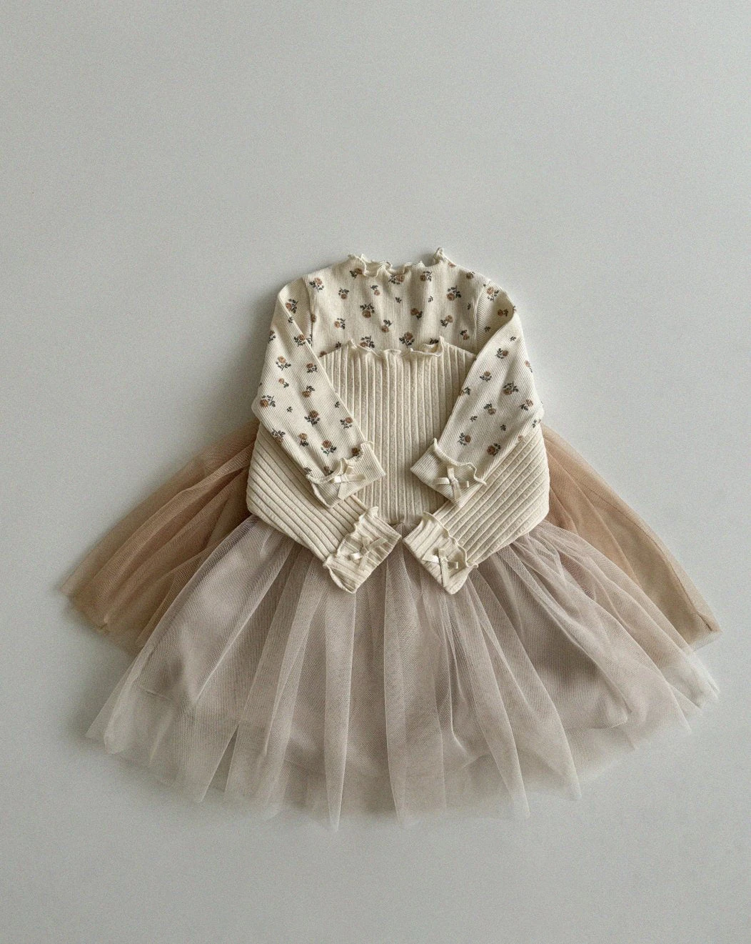 A sweet knit dress featuring a tutu skirt and lettuce trim details on the neckline. Matching leggings sold separately.