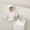 Soft long-sleeved body made in 96 percent organic cotton and 4 percent polyester, with a hint of stretch. Designed with a frill collar and elasticated neckline. Features frill details around the cuffs and leg endings, and snap buttons at the crotch for easy dressing.