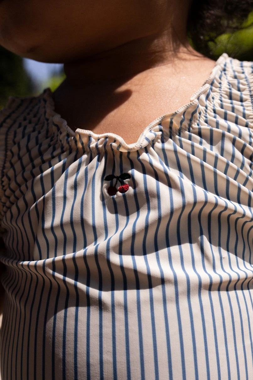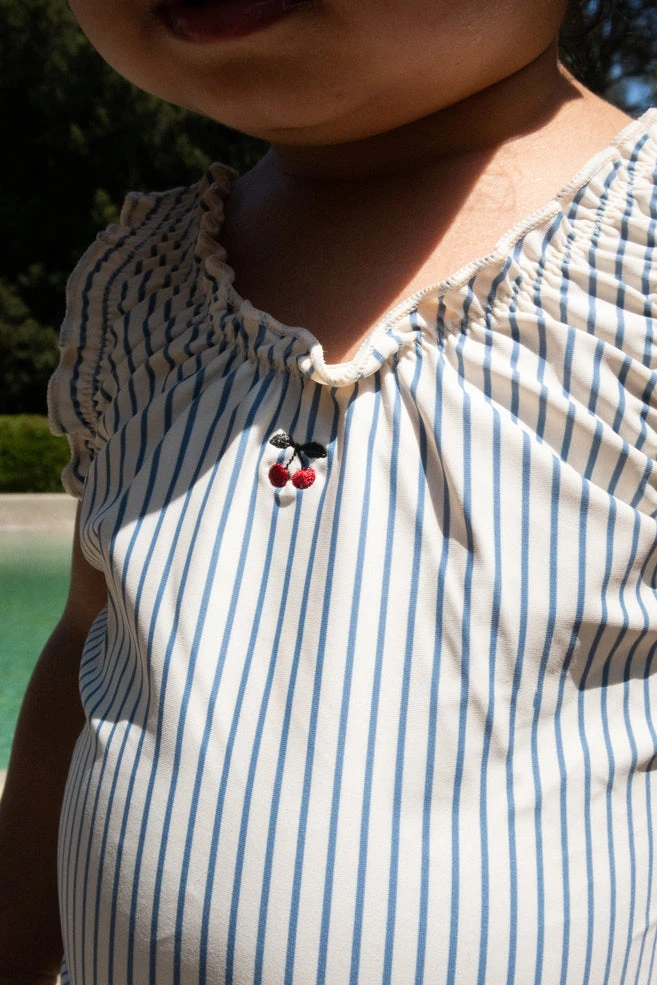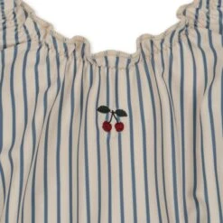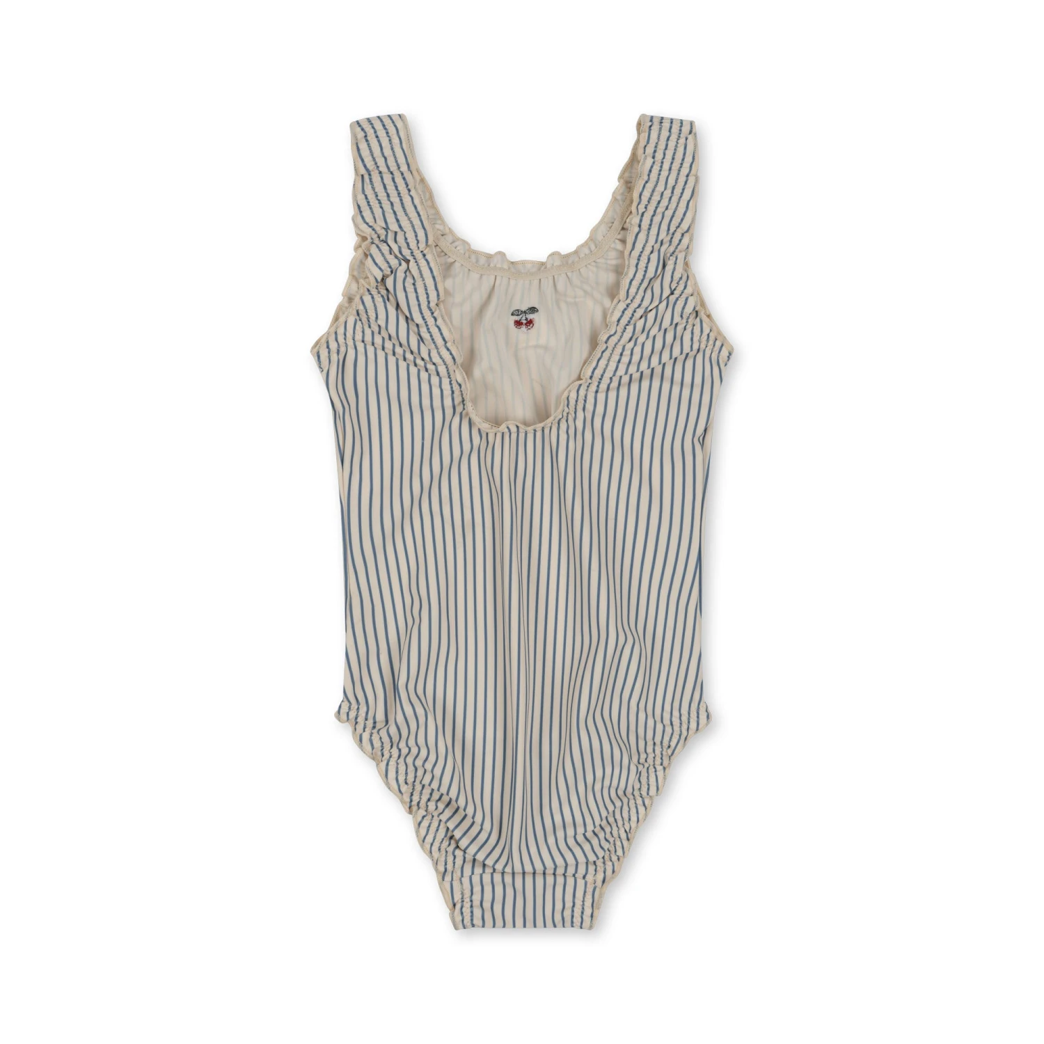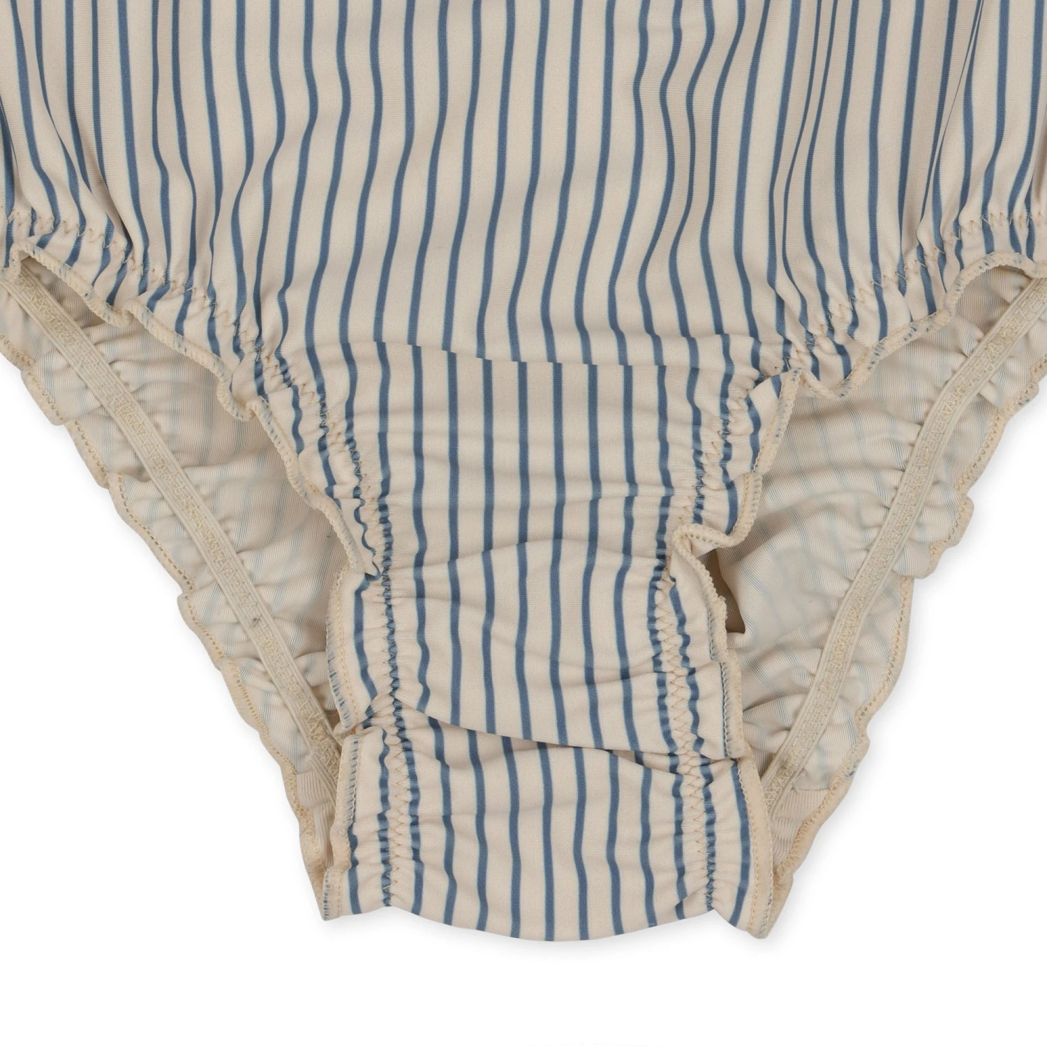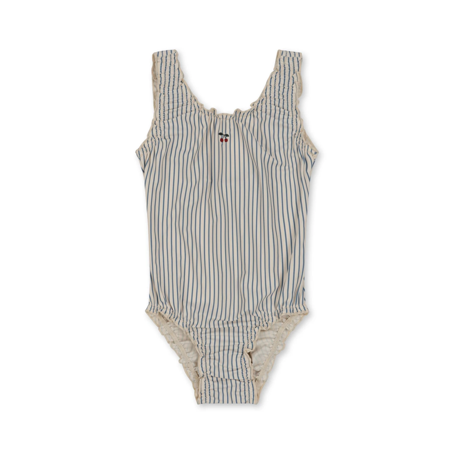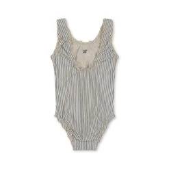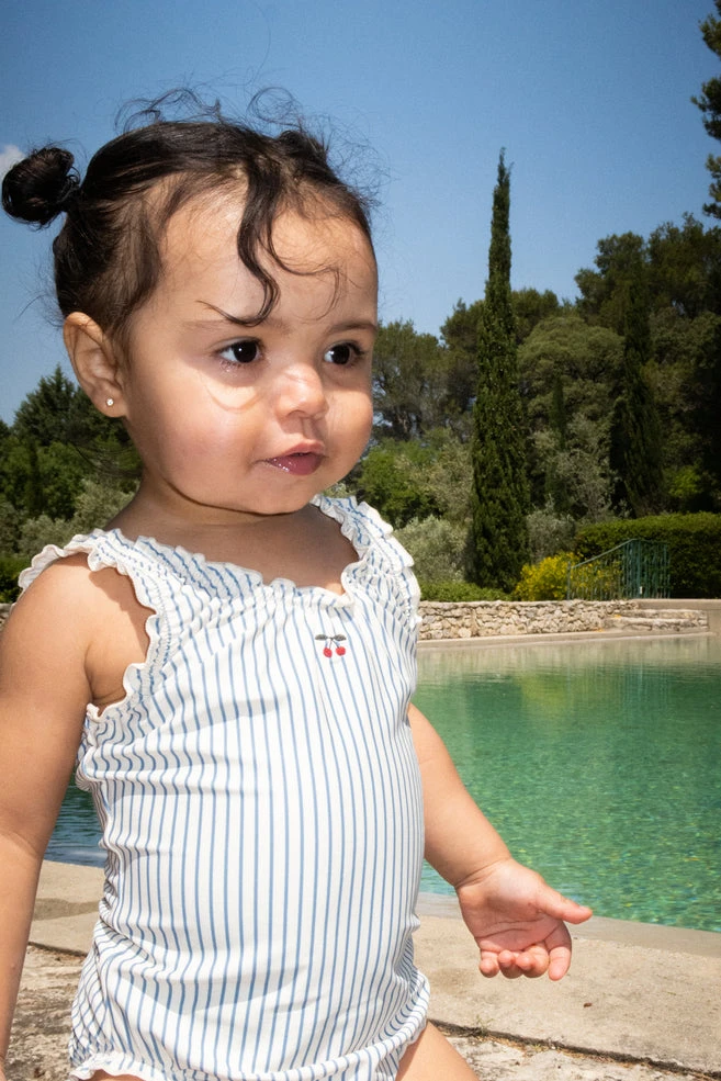 Swimsuit in a comfy, stretchy fabric. Features press buttons at leg openings from sizes 6m – 18m.