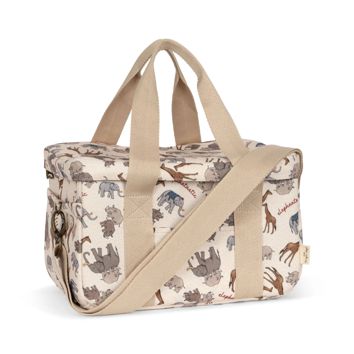 Cooler bag made in 100 percent polyester with insulating thermal lining. The bag is designed with two inner pockets. Features an adjustable shoulder strap, two handles and a zipper opening at the top.