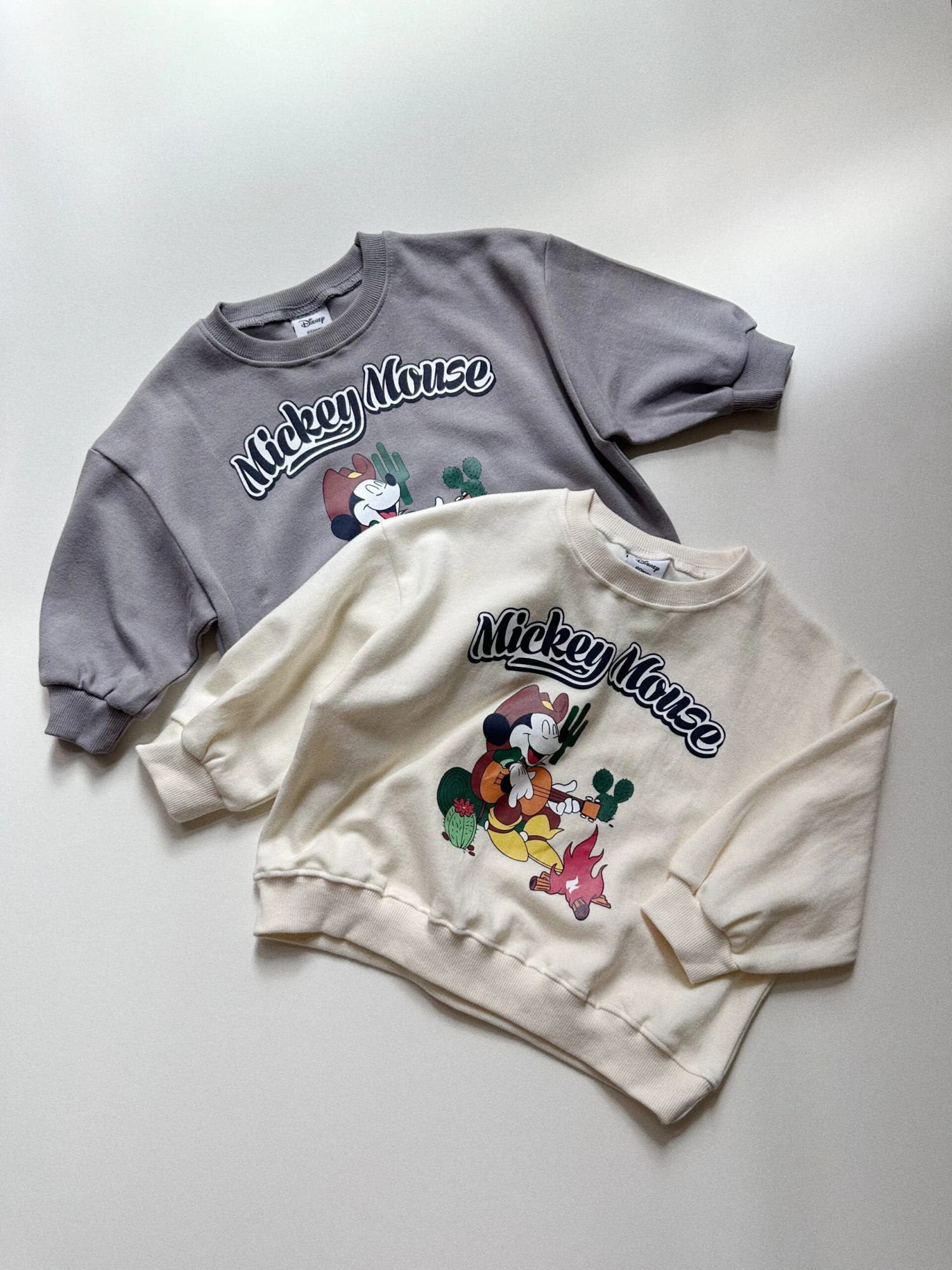 A lightweight crewneck sweatshirt featuring a cowboy Mickey Mouse graphic on the front.