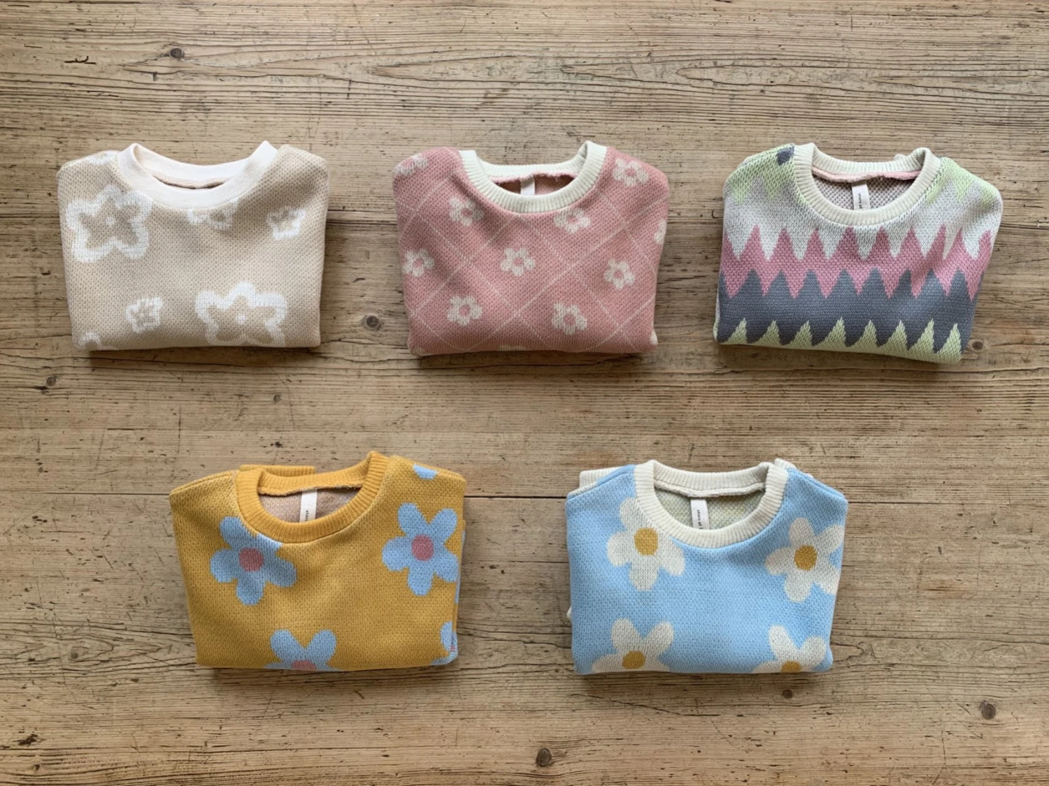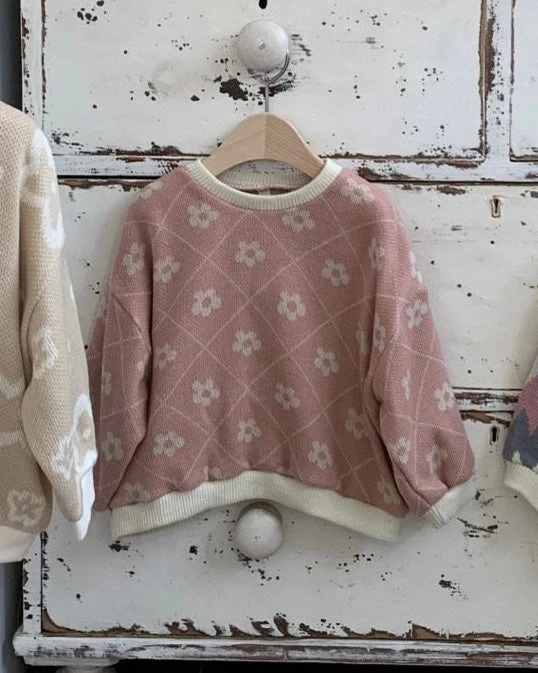 A perfectly oversized knit crewneck featuring an allover daisy flower print.