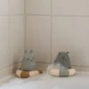 A set of 3 items which includes a bib, muslin cloth, and a diaper with a velcro closure for a doll.