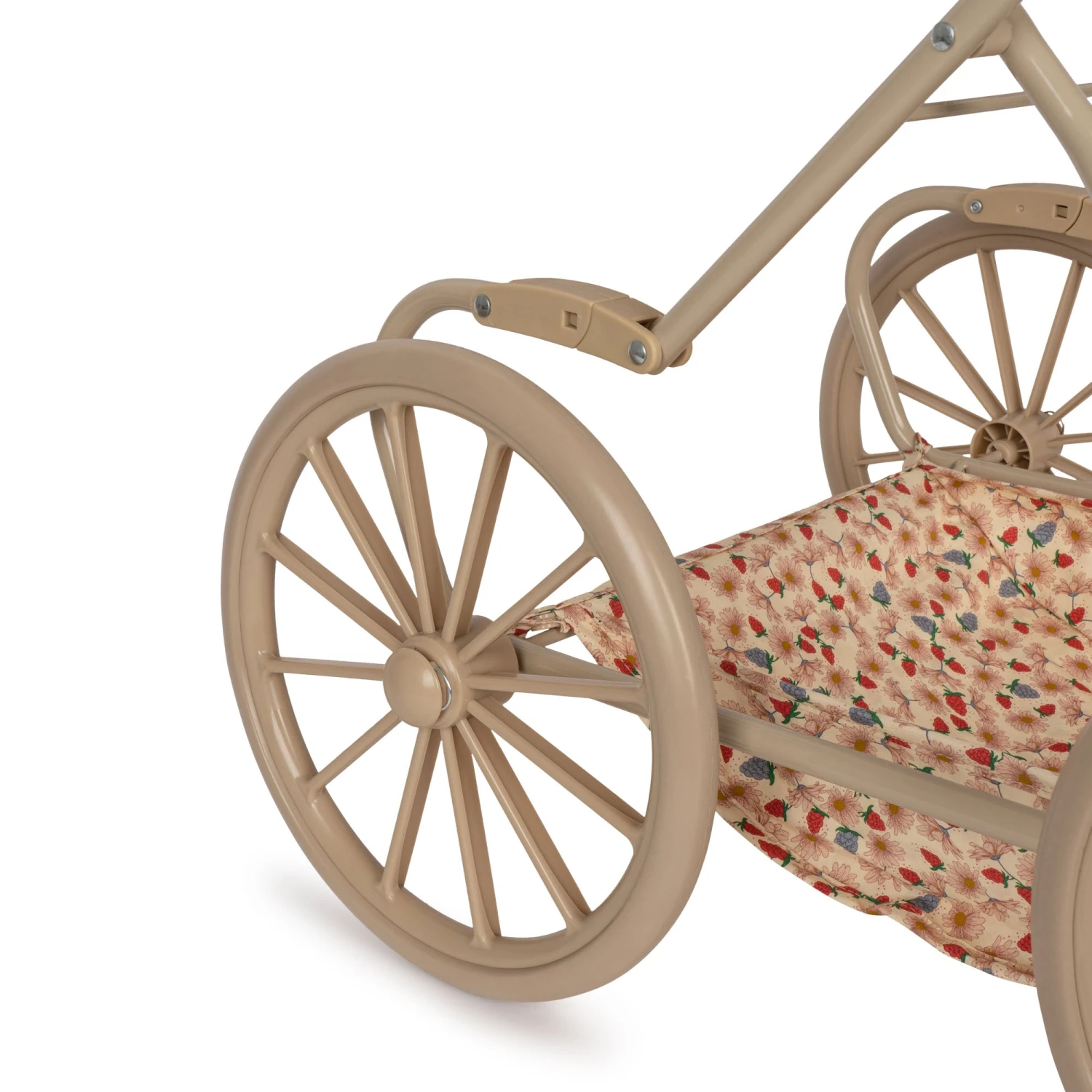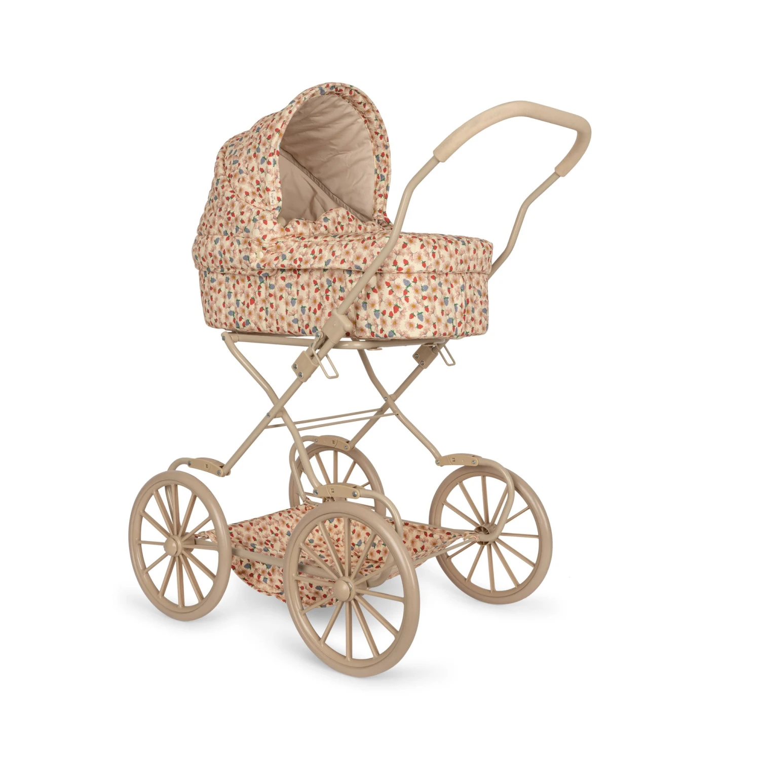 Vintage style doll pram designed with four large wheels made in EVA material for extra stability.