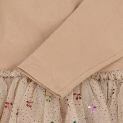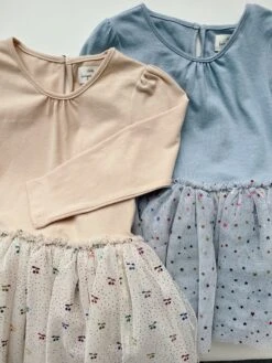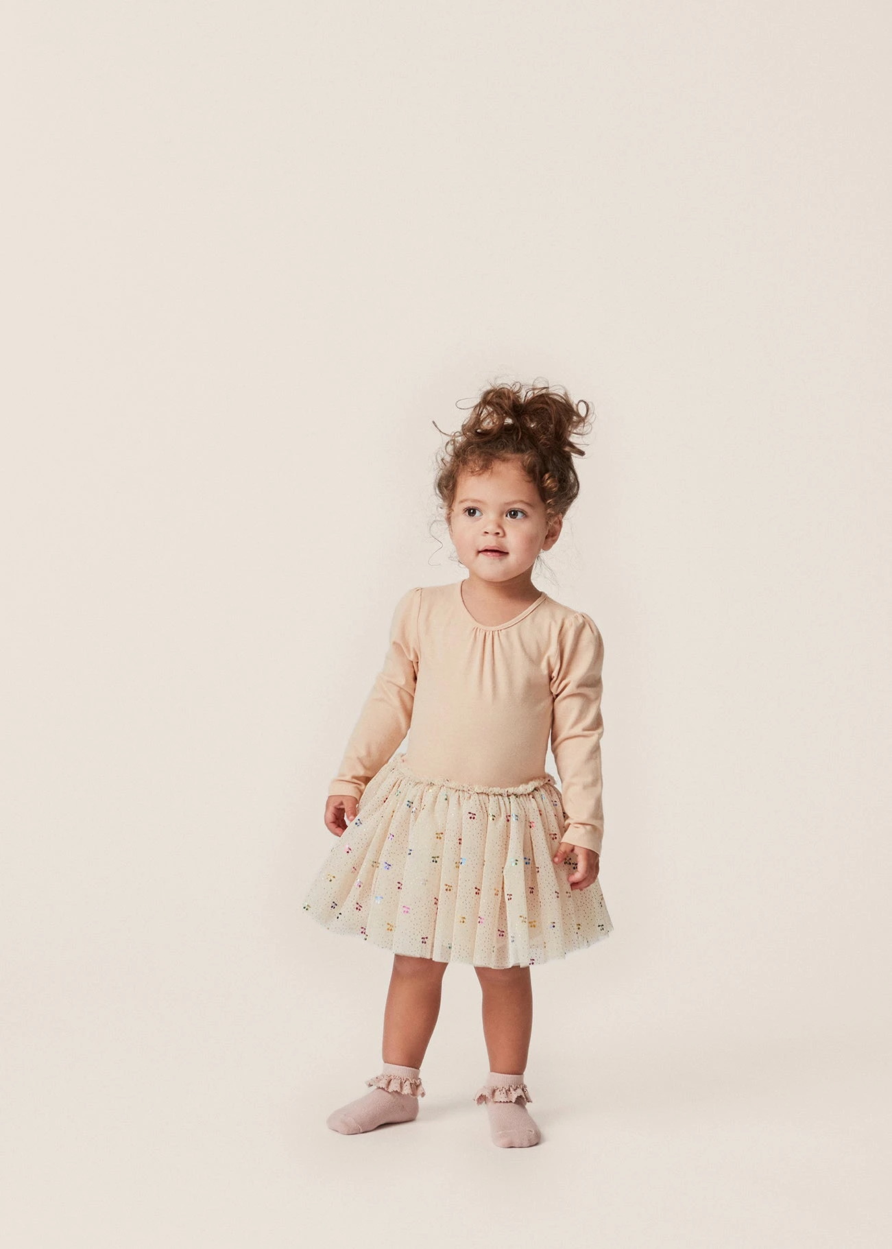 Soft long-sleeved ballerina dress with puff sleeves and a three-layered tulle skirt.