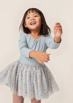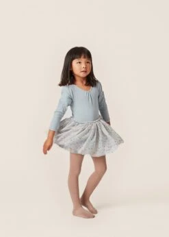 Soft long-sleeved ballerina dress with puff sleeves and a three-layered tulle skirt.