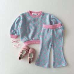 A long sleeved jacquard set featuring matching bootcut pants for the stylish babes.