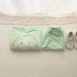 A cozy sweatshirt and sweatpants set for the siblings to match.