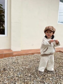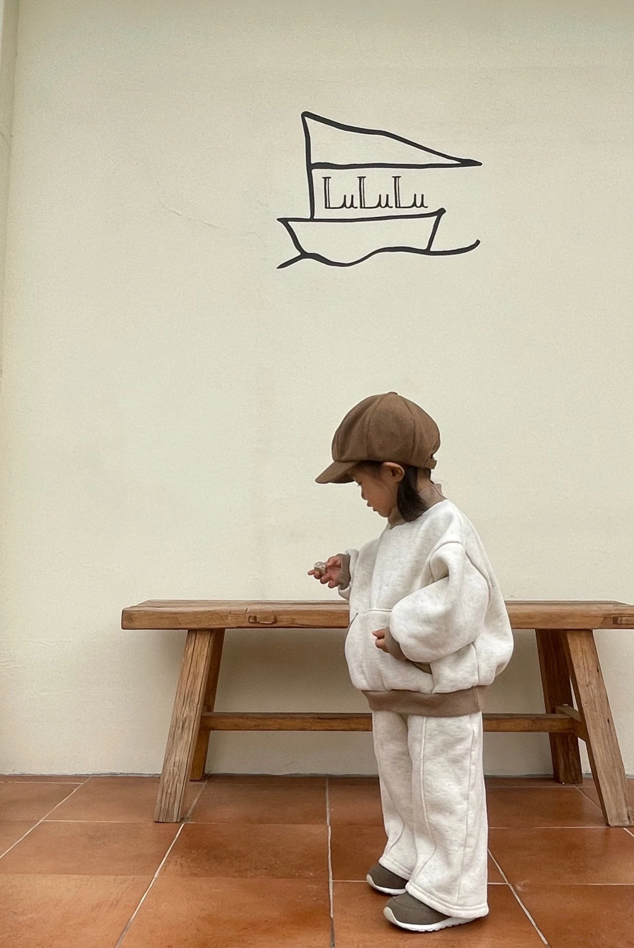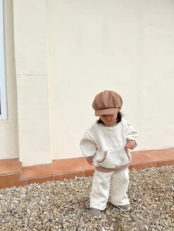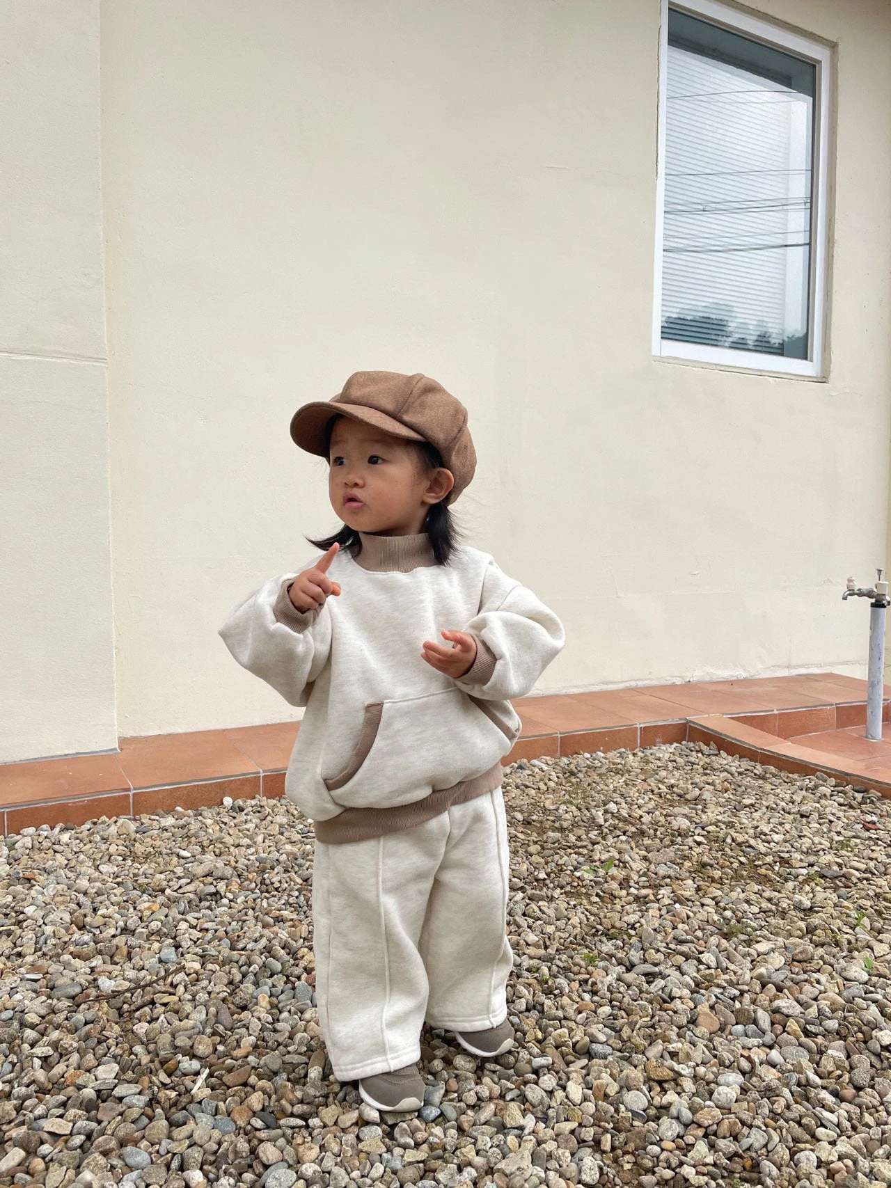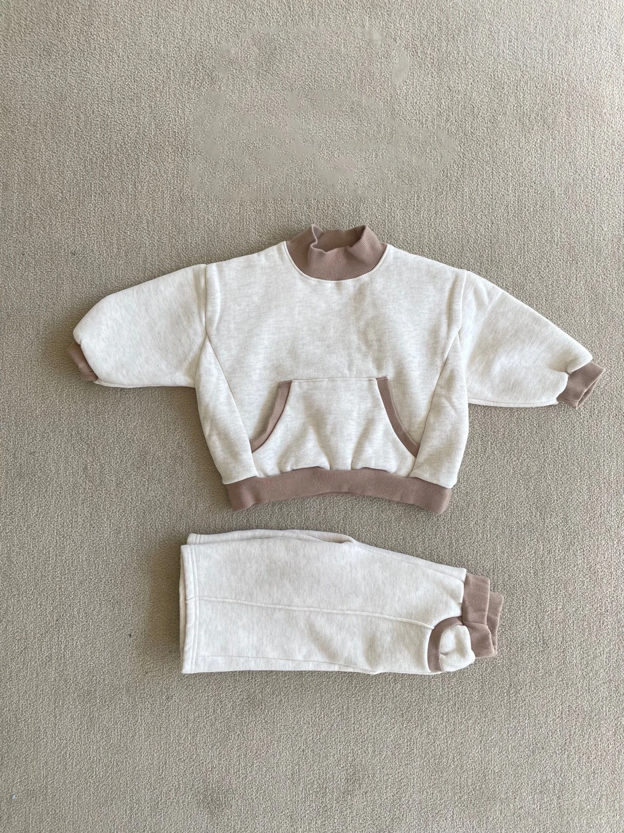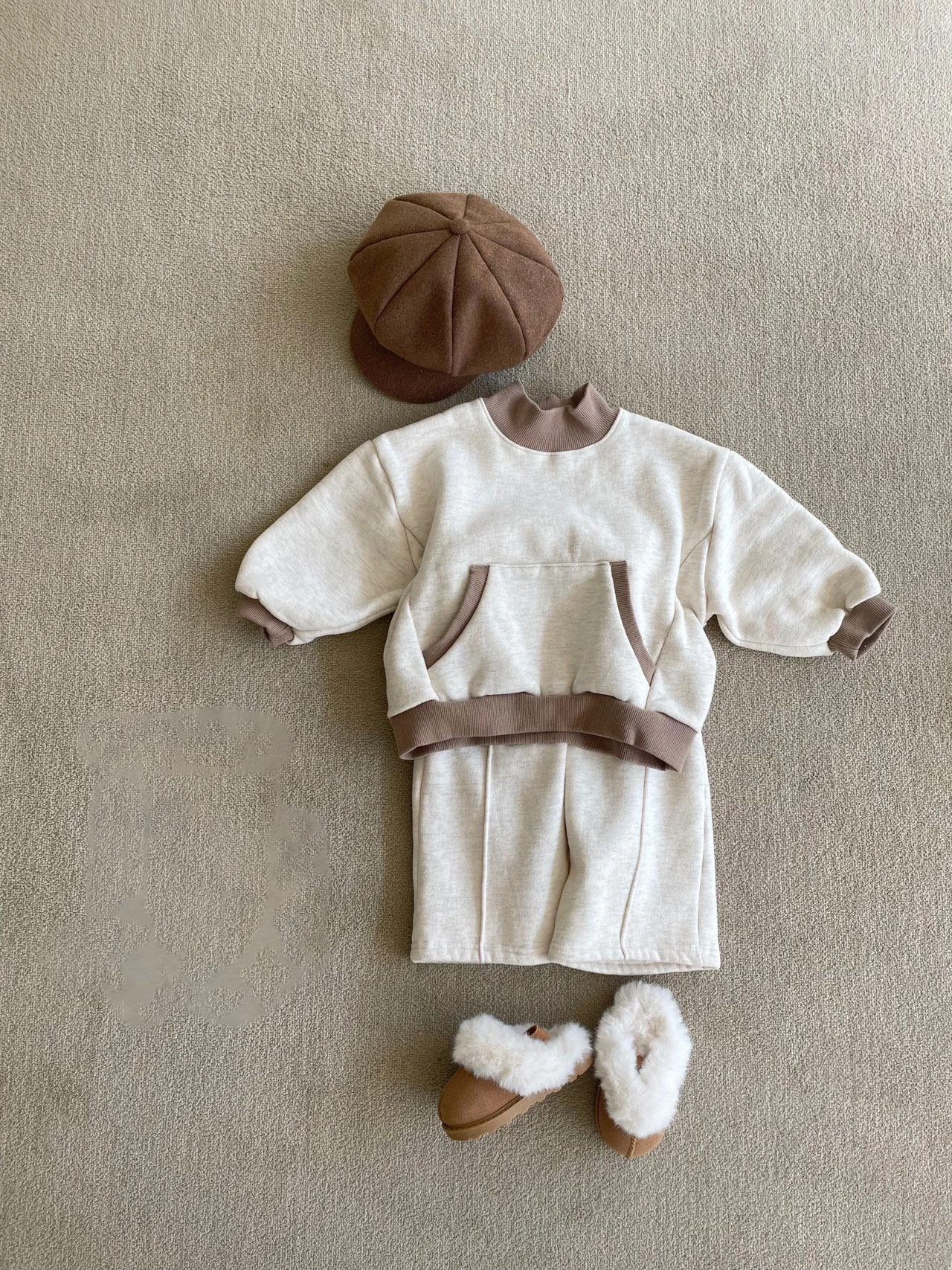 An oversized high neck sweatshirt featuring matching wide legs pants.