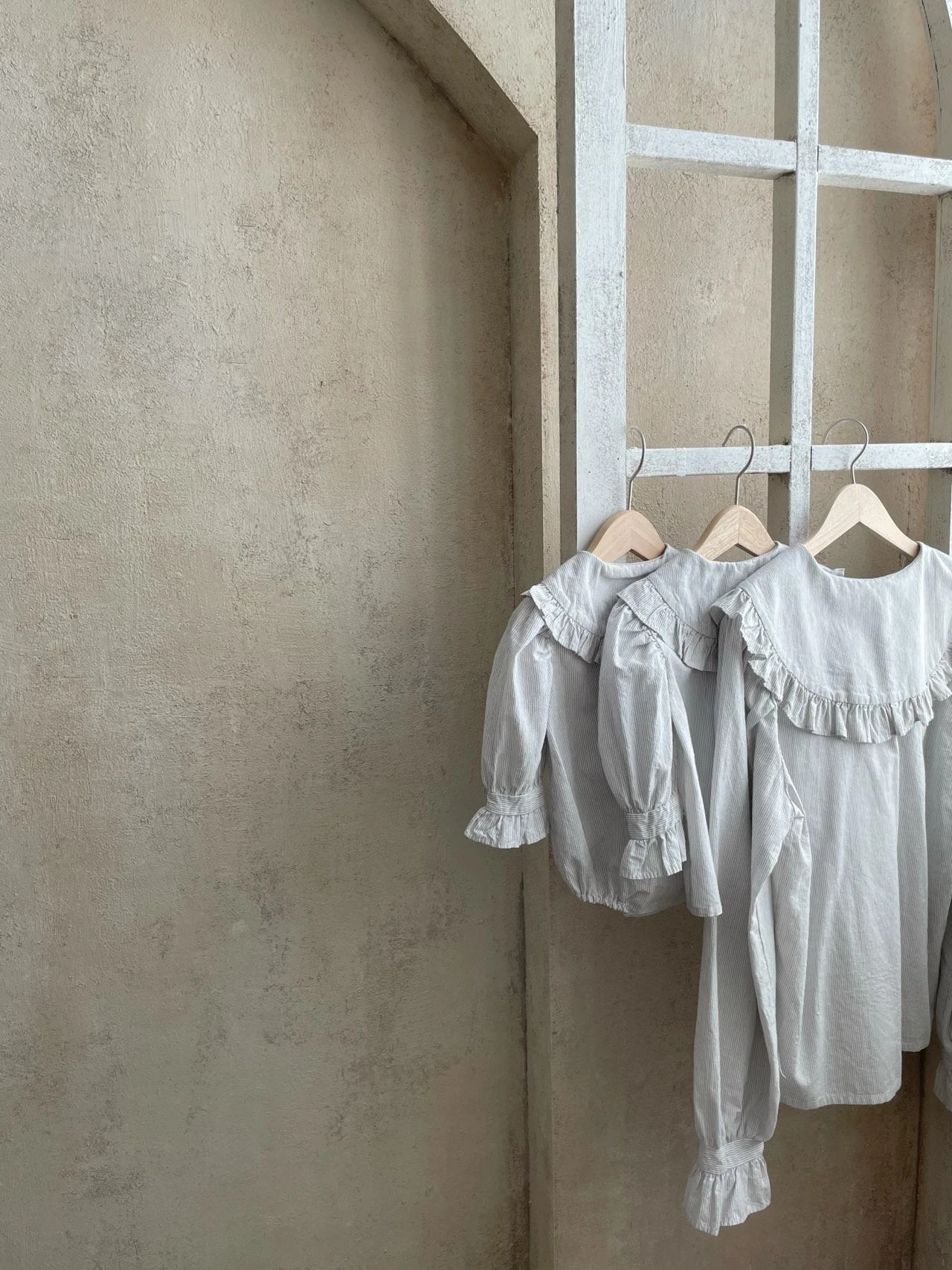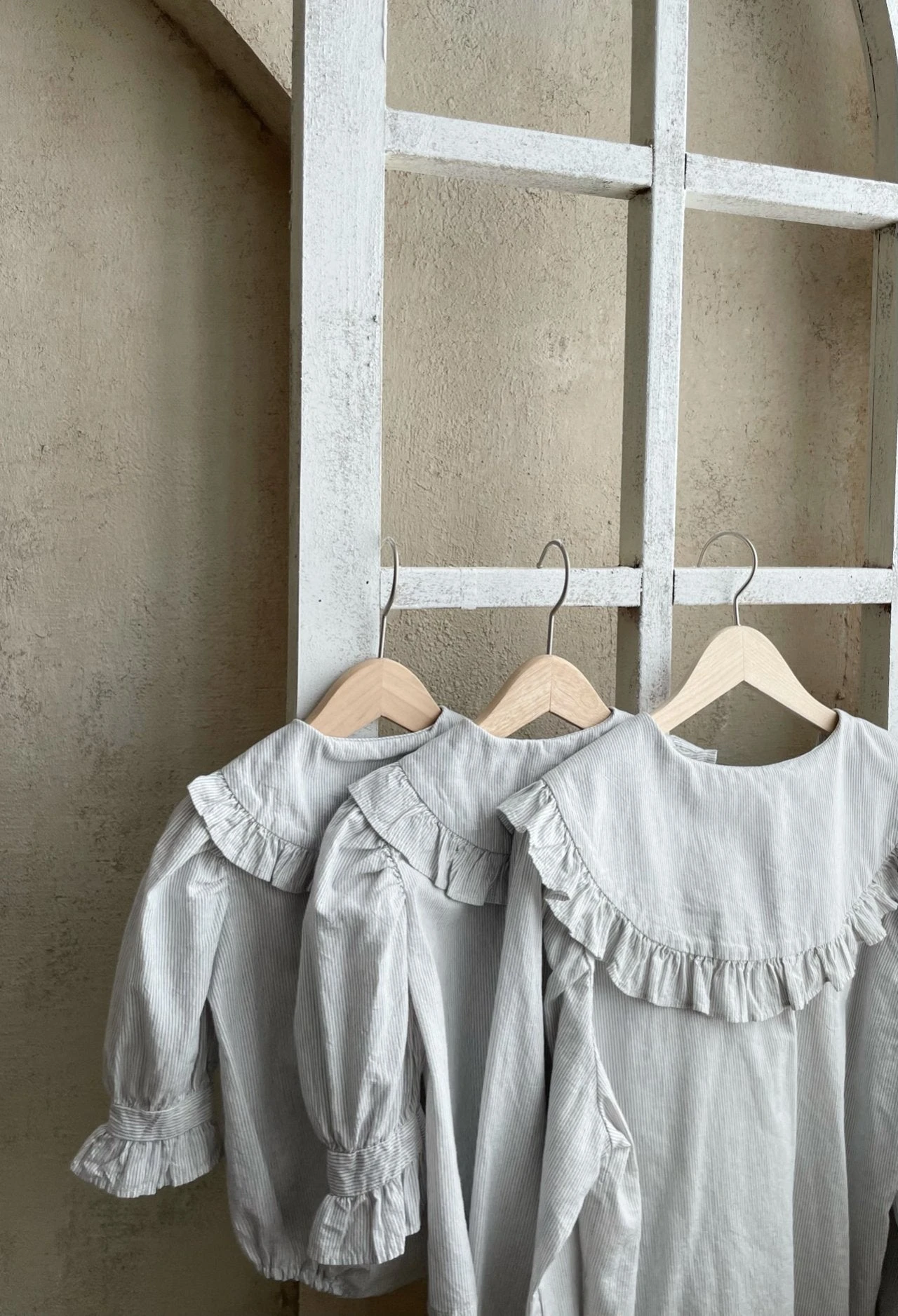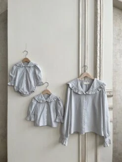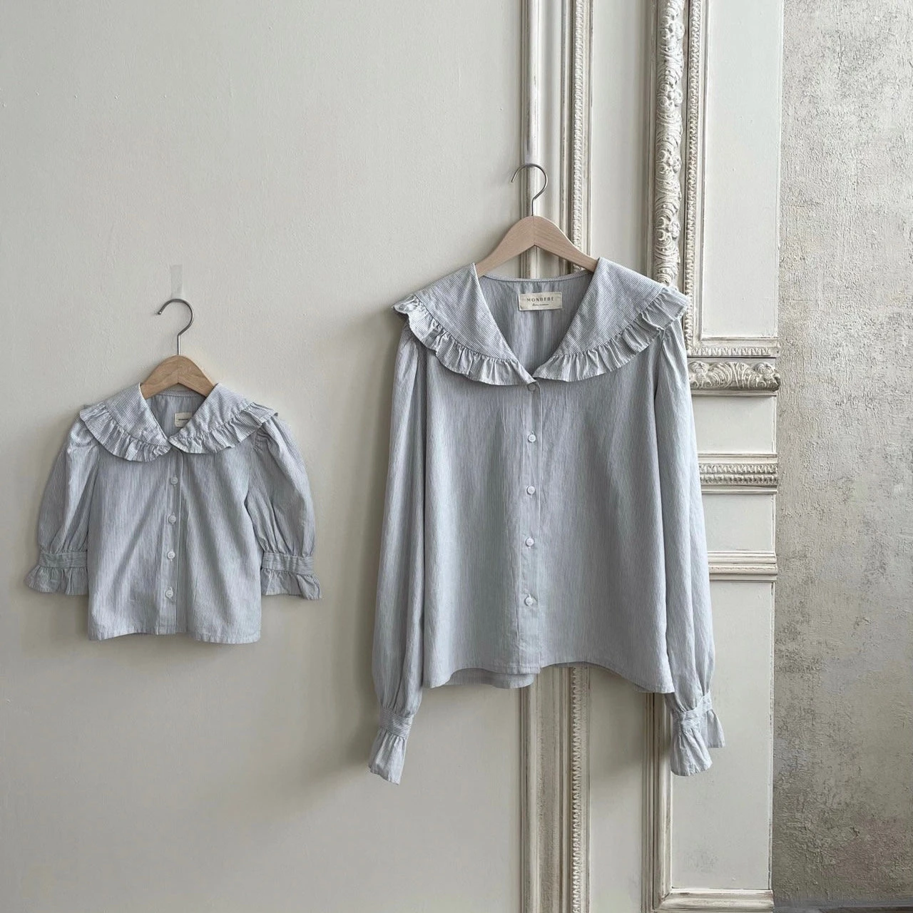 Mommy + Me matching collared button up blouse featuring Ruffle details.