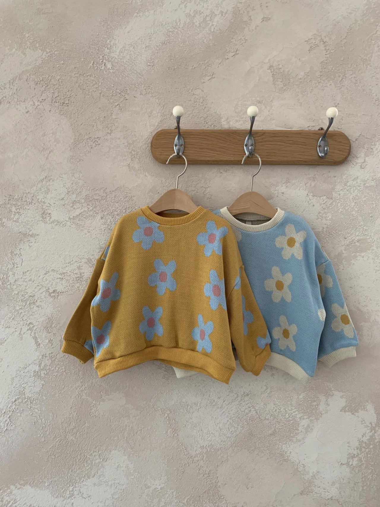 A perfectly oversized knit crewneck featuring an allover daisy flower print.