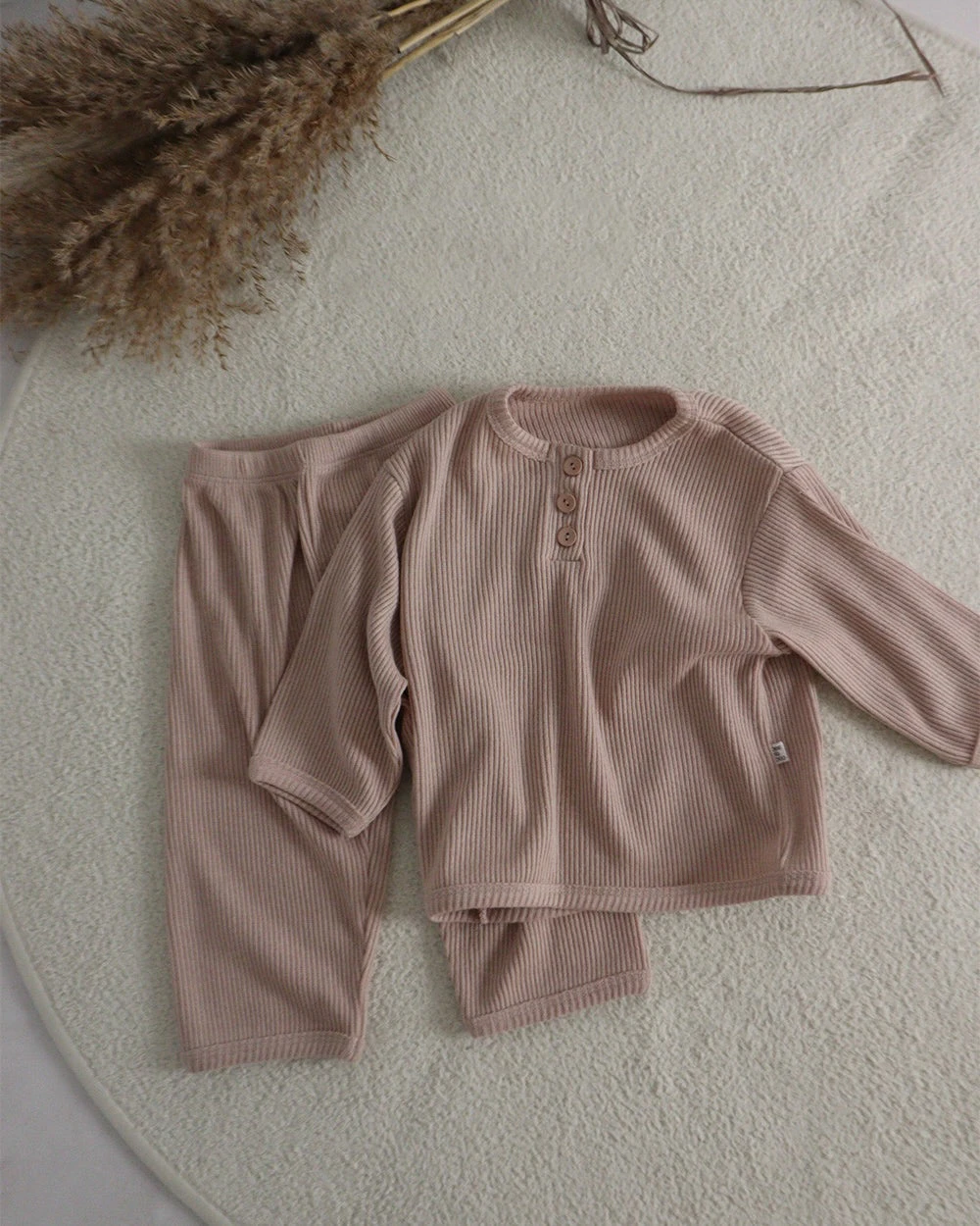 A classic ribbed top and matching pants featuring button up details.