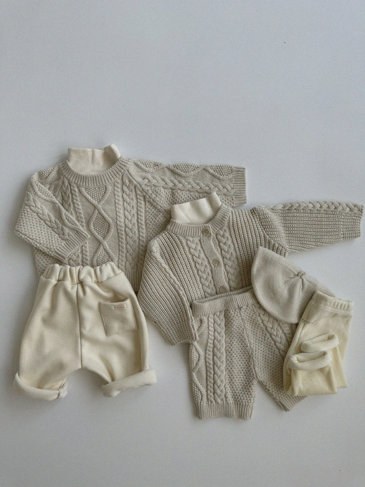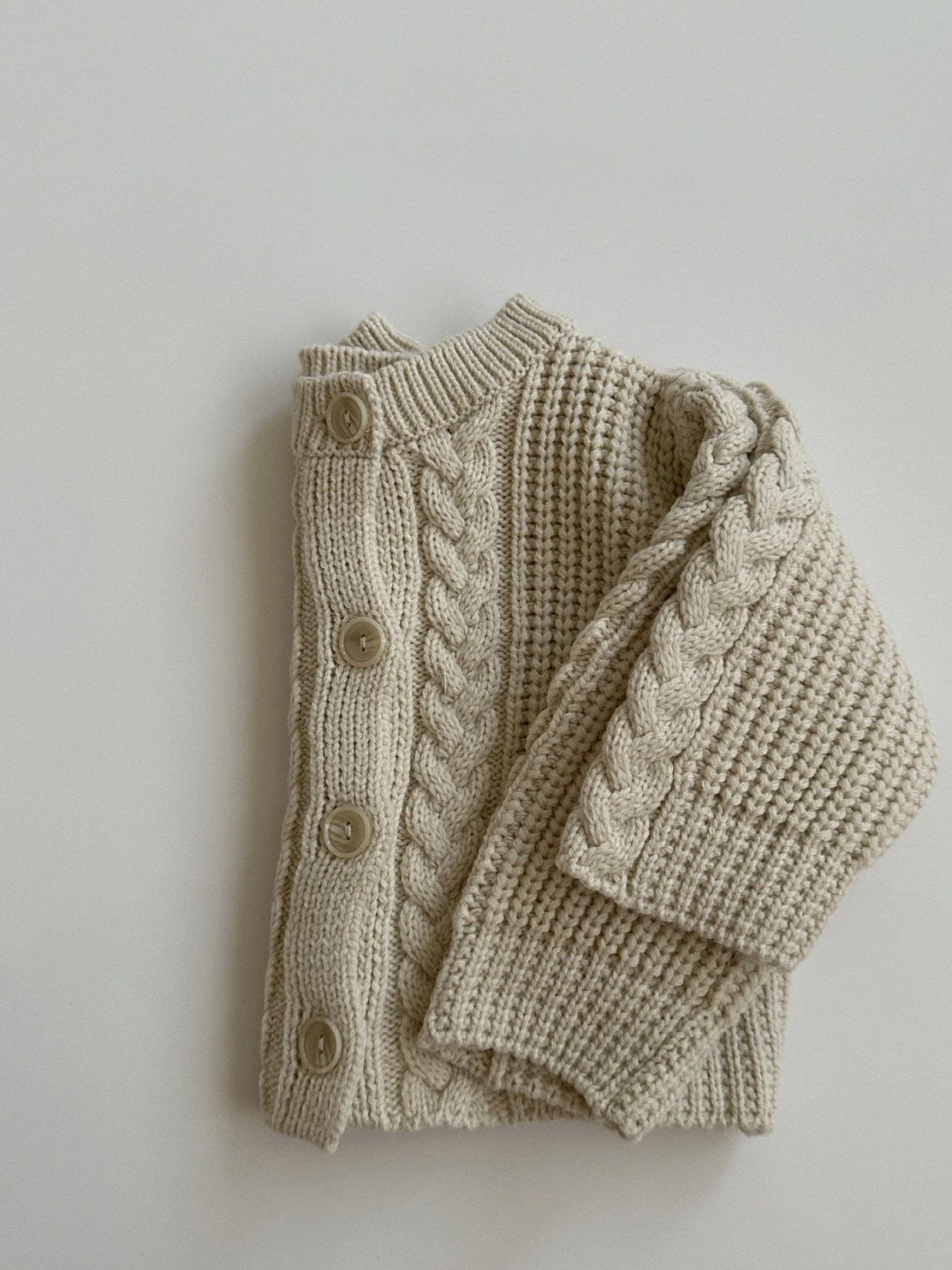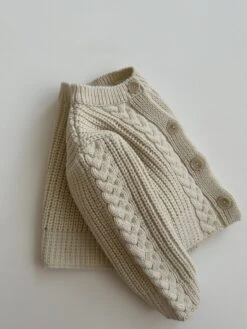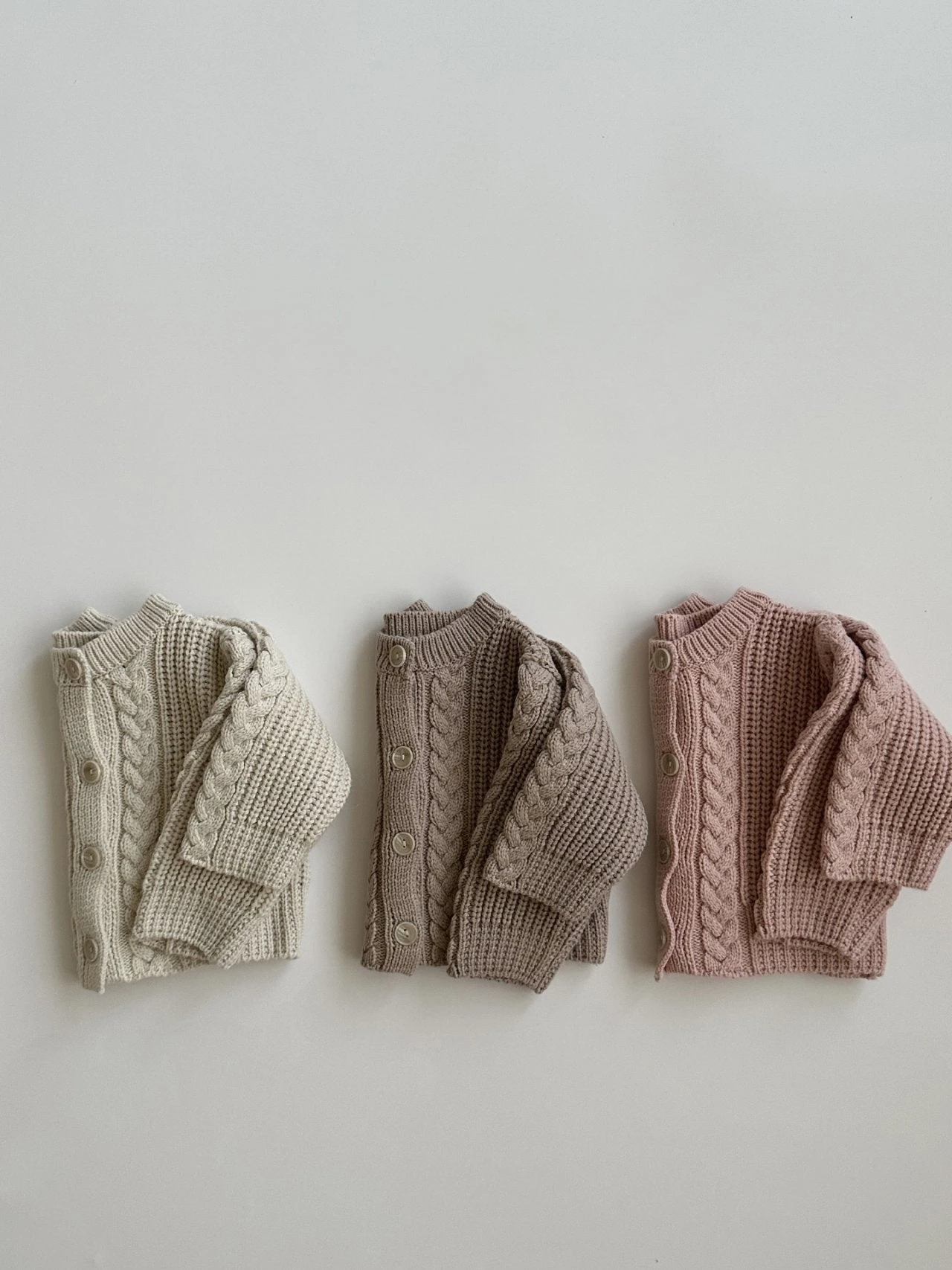 A cozy button up knit cardigan. Matching pants available, sold separately.