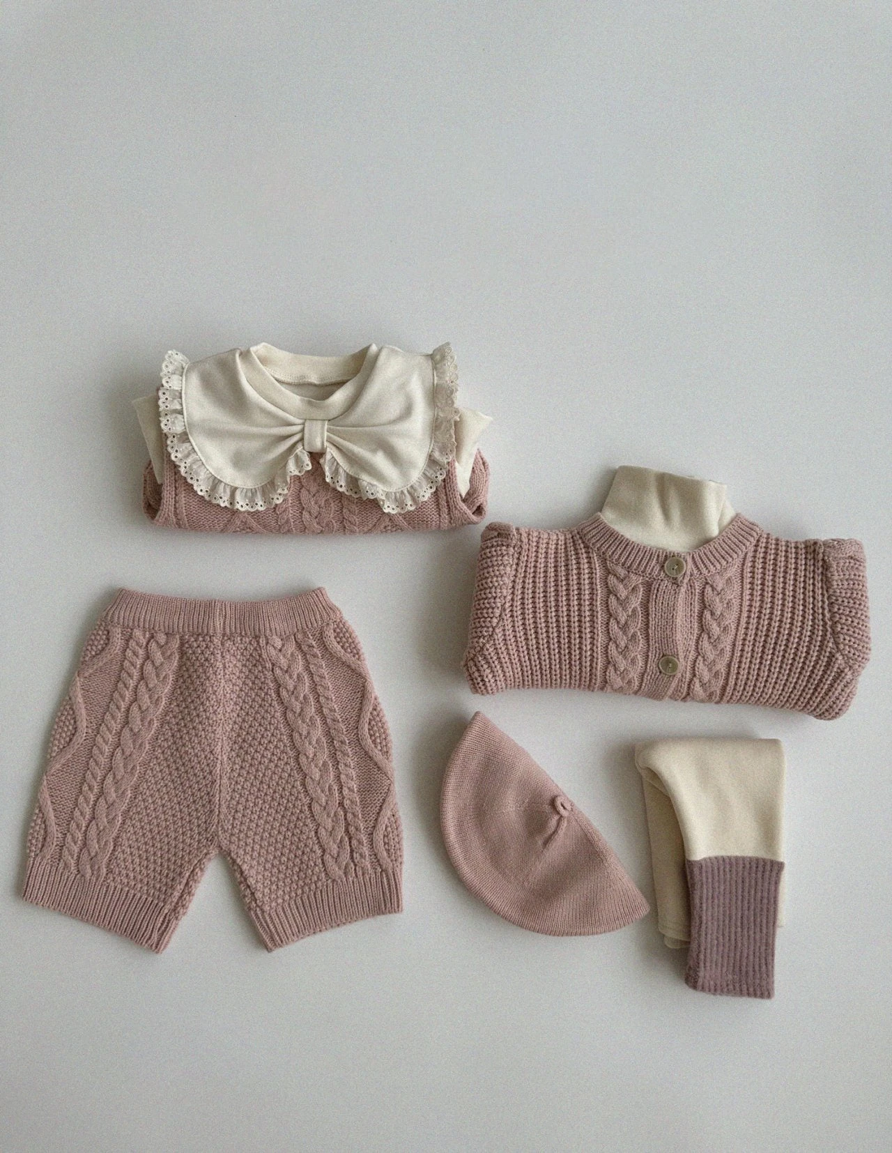A cozy button up knit cardigan. Matching pants available, sold separately.