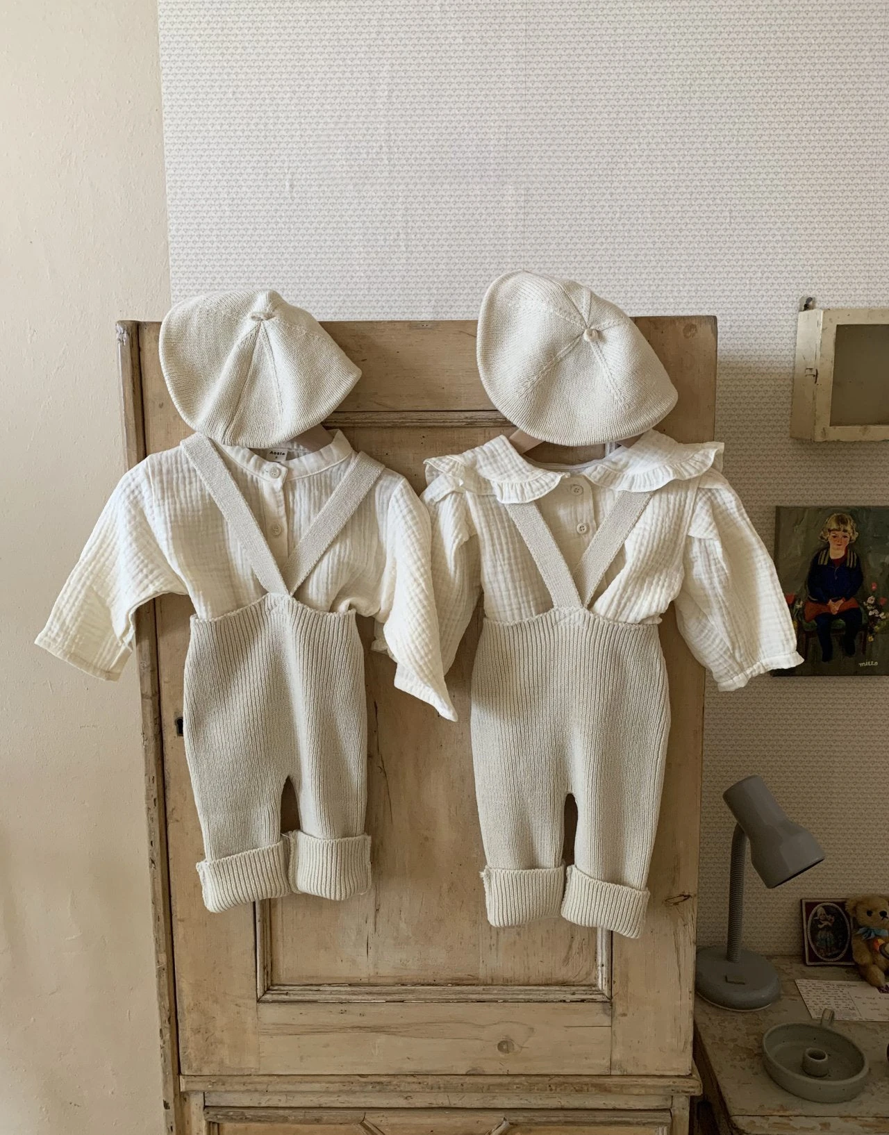 A cozy unisex knit overall to dress up or down with a favorite tee, sweater, or a dressy shirt. A versatile piece to style in different ways throughout this F/W season.