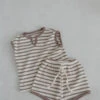 | 2-piece set made in 100 percent organic GOTS certified cotton. The set consists of a t-shirt and shorts with a soft elasticated waist and an elastic drawstring waistband. |