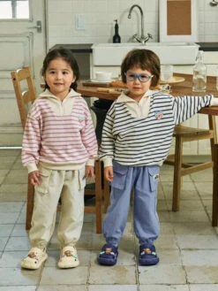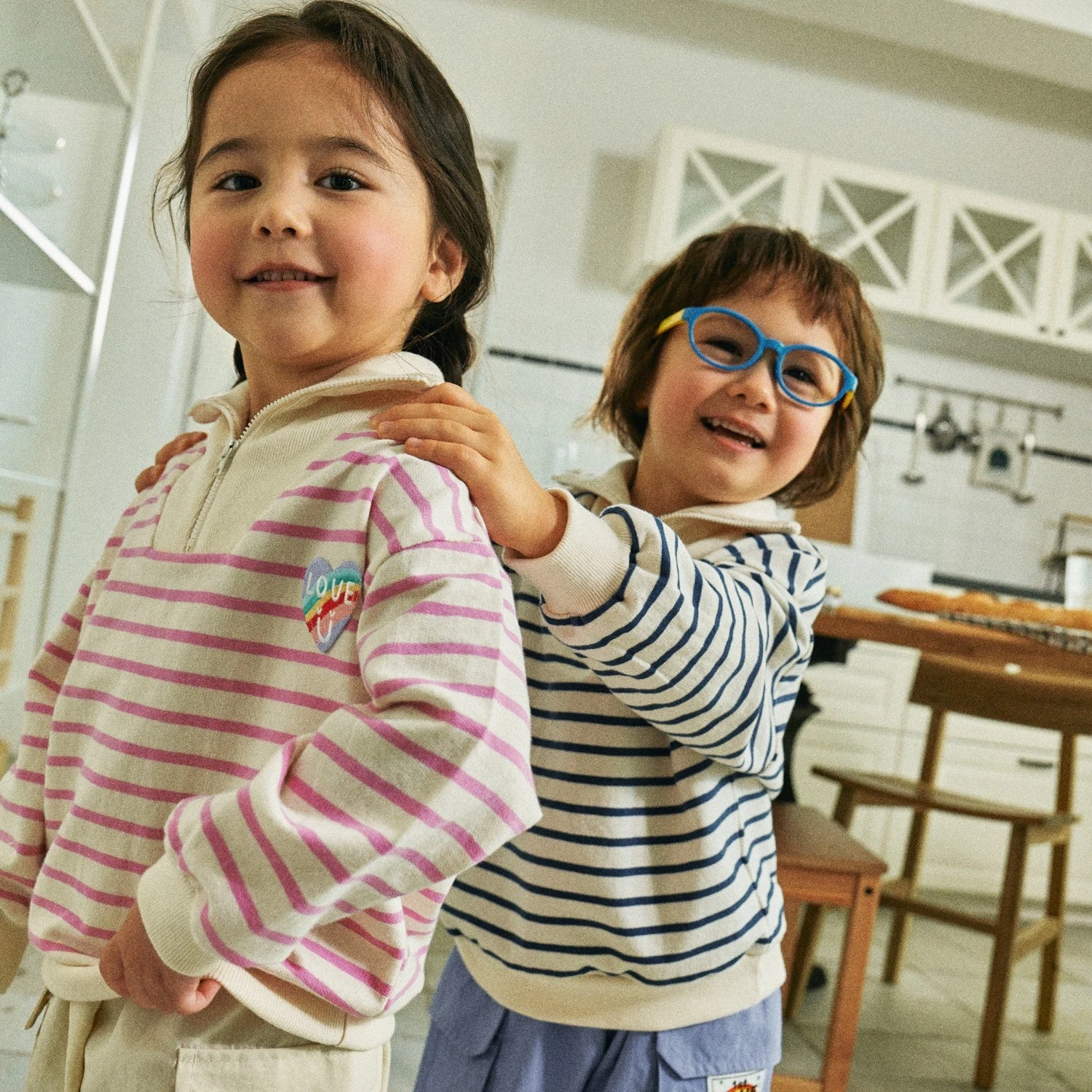 A perfectly oversized striped quarter zip sweatshirt featuring “LOVE U” heart patch.