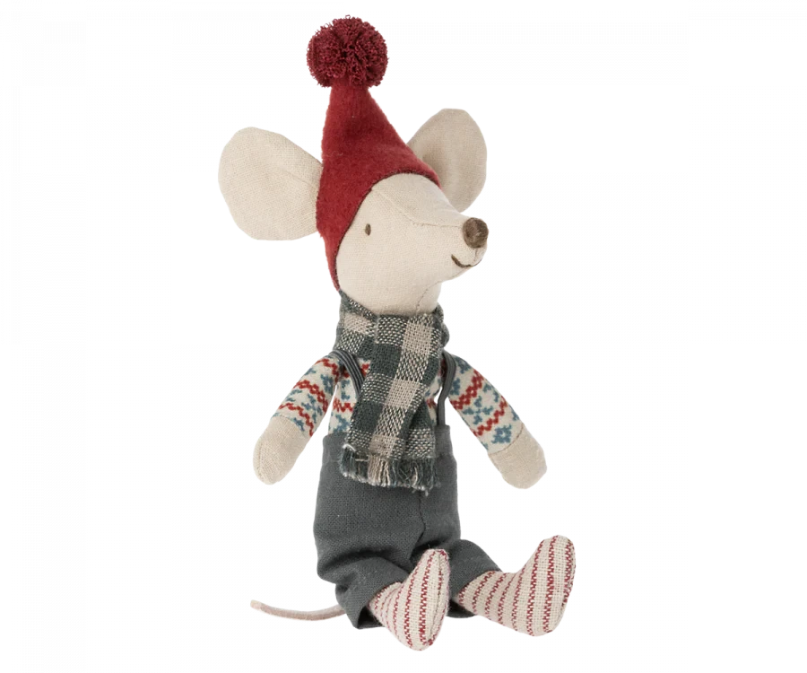 A sweet and adorable small friend, nicely dressed up for Christmas. The mouse fits perfectly into the Gingerbread house.