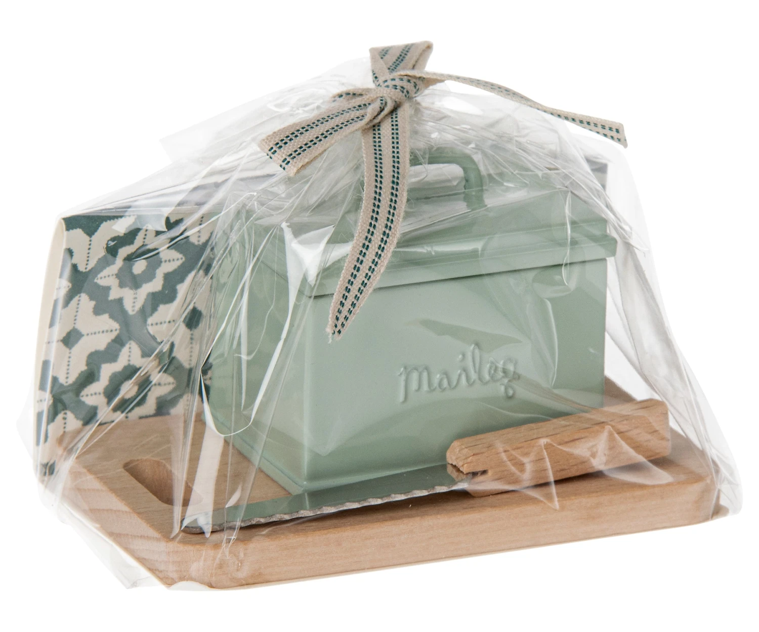 This miniature playset consists of a bread box, half a loaf of bread and 3 slices, a cutting board, and a knife. It is the perfect start of a play in the miniature kitchen.