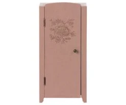 This vintage looking closet has a beautiful embossed flower print on the front and beautiful printed wallpaper inside. The shelves inside will make sure the organizing play will begin. This closet fits into the Maileg dollhouse.