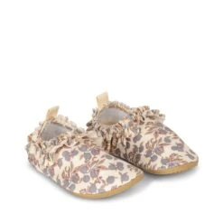 Swim shoes made in 95 percent polyester and 5 percent elastane designed with a decorative frill. Feature flexible non-slip rubber soles and are easy to pull on. The shoes are practical for a day at a rocky beach or a day by a slippery pool. The stretchy fabric protects against the sun’s UV rays with the highest ultraviolet protection factor, UPF 50+.