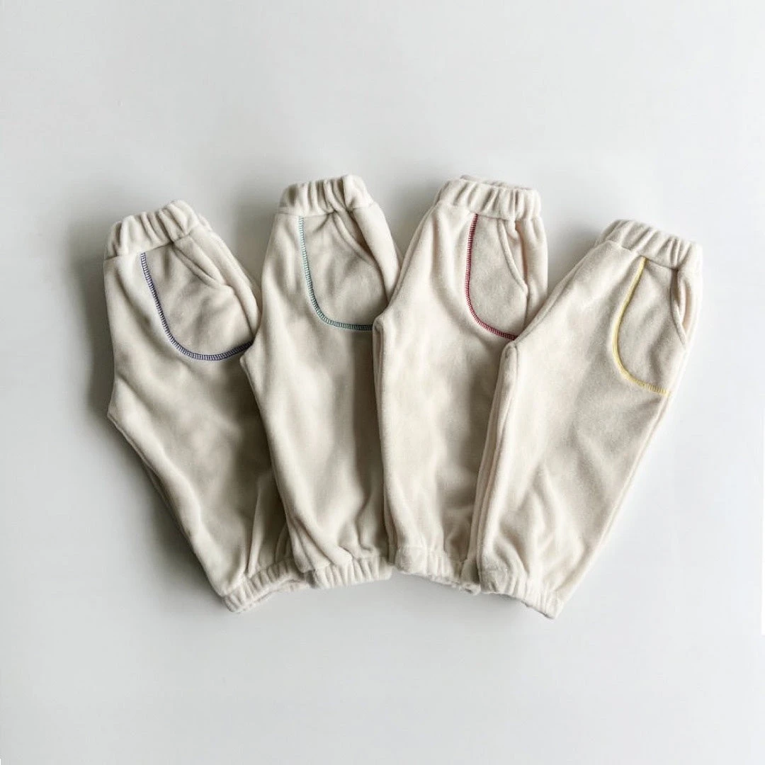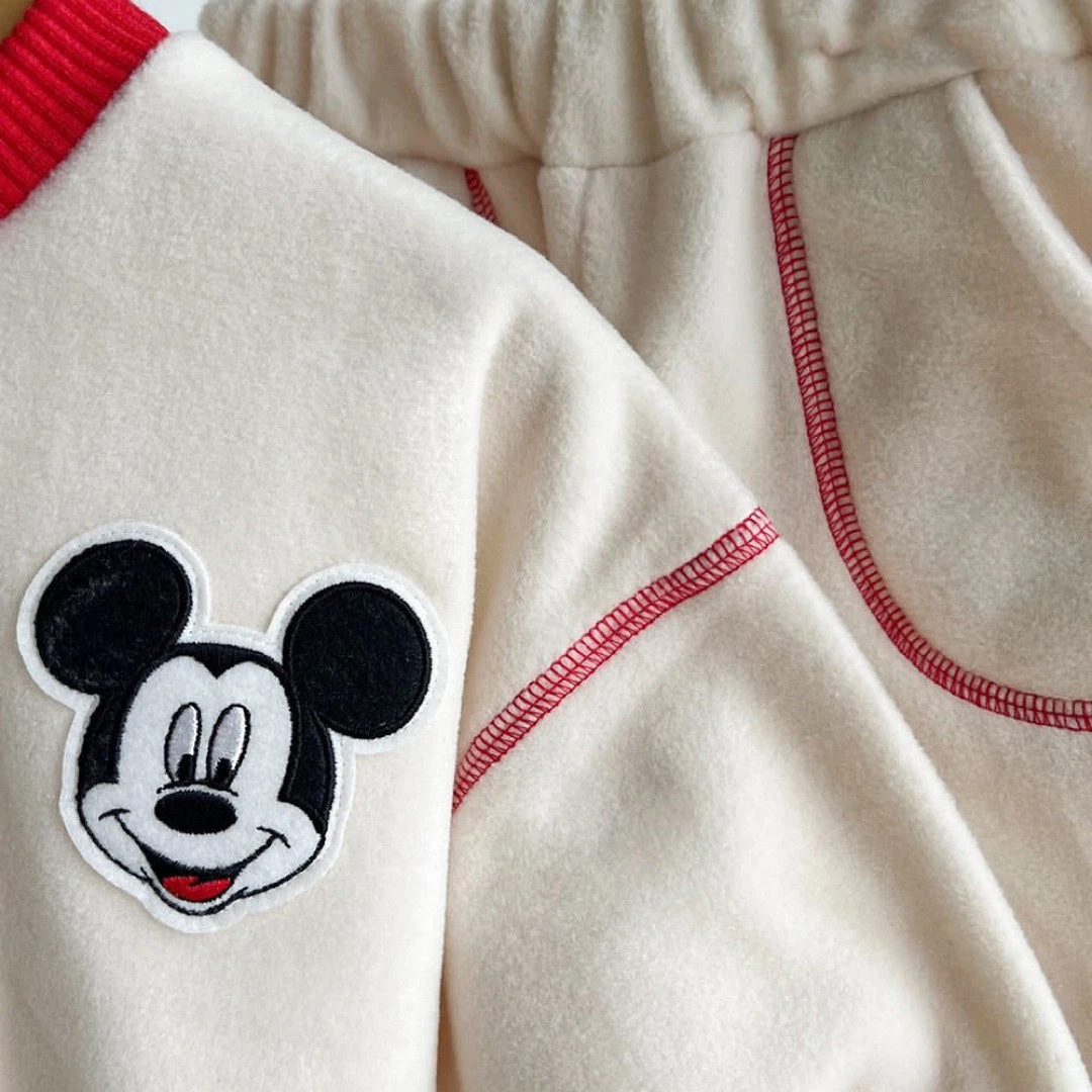 Cozy fleece sweat sets with a splash of color featuring a mickey mouse patch on the front.