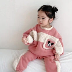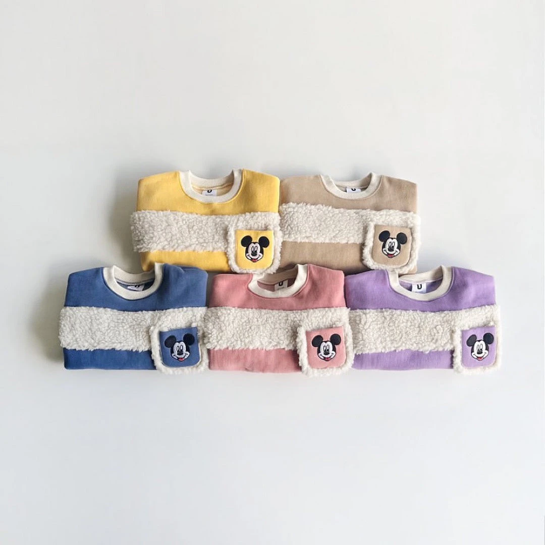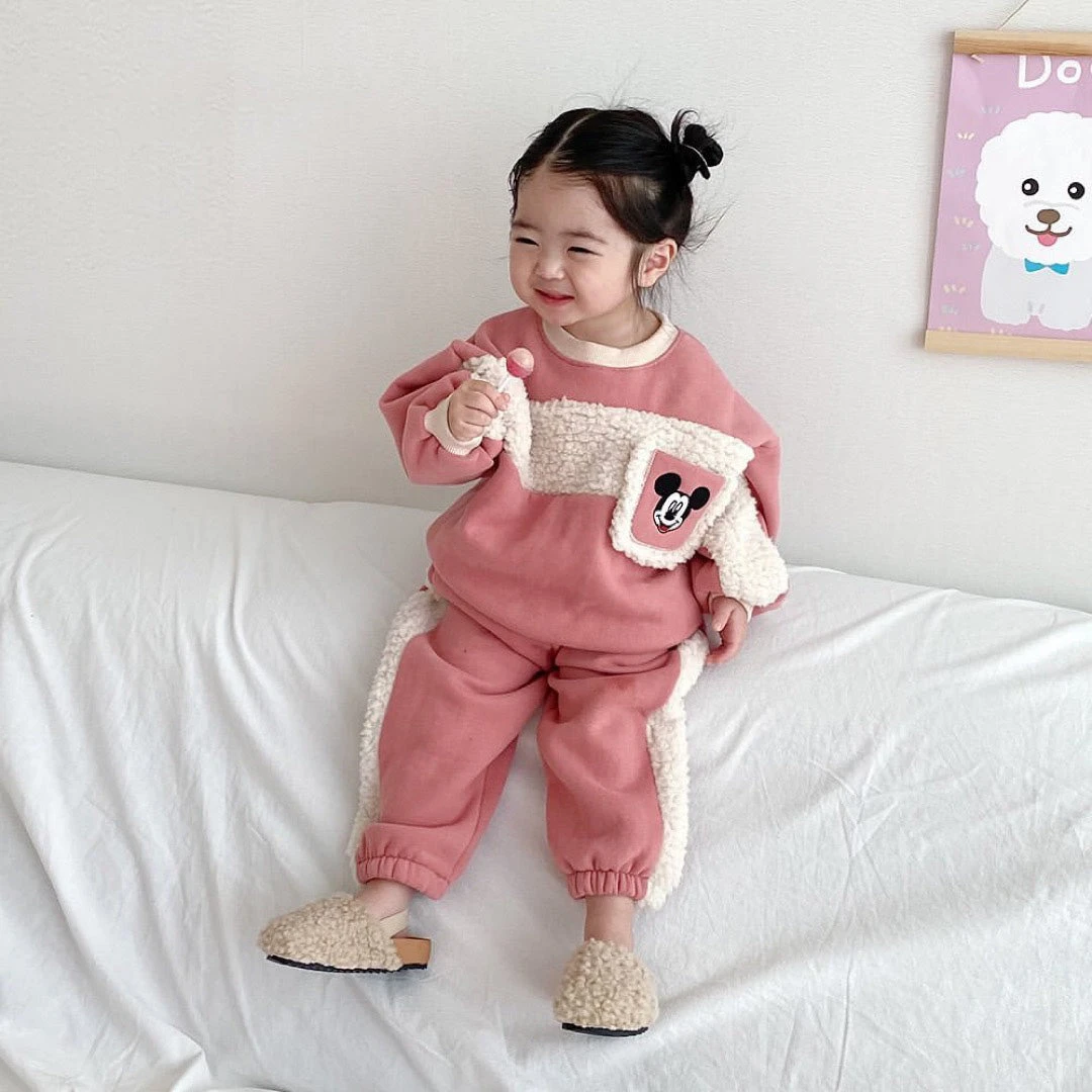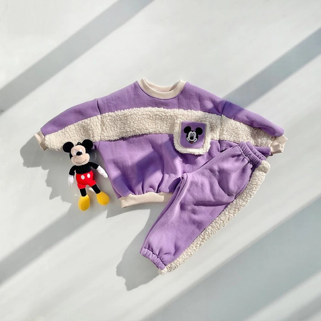 Cozy sweat set featuring mouse embroidery details at the front pocket and sherpa details.