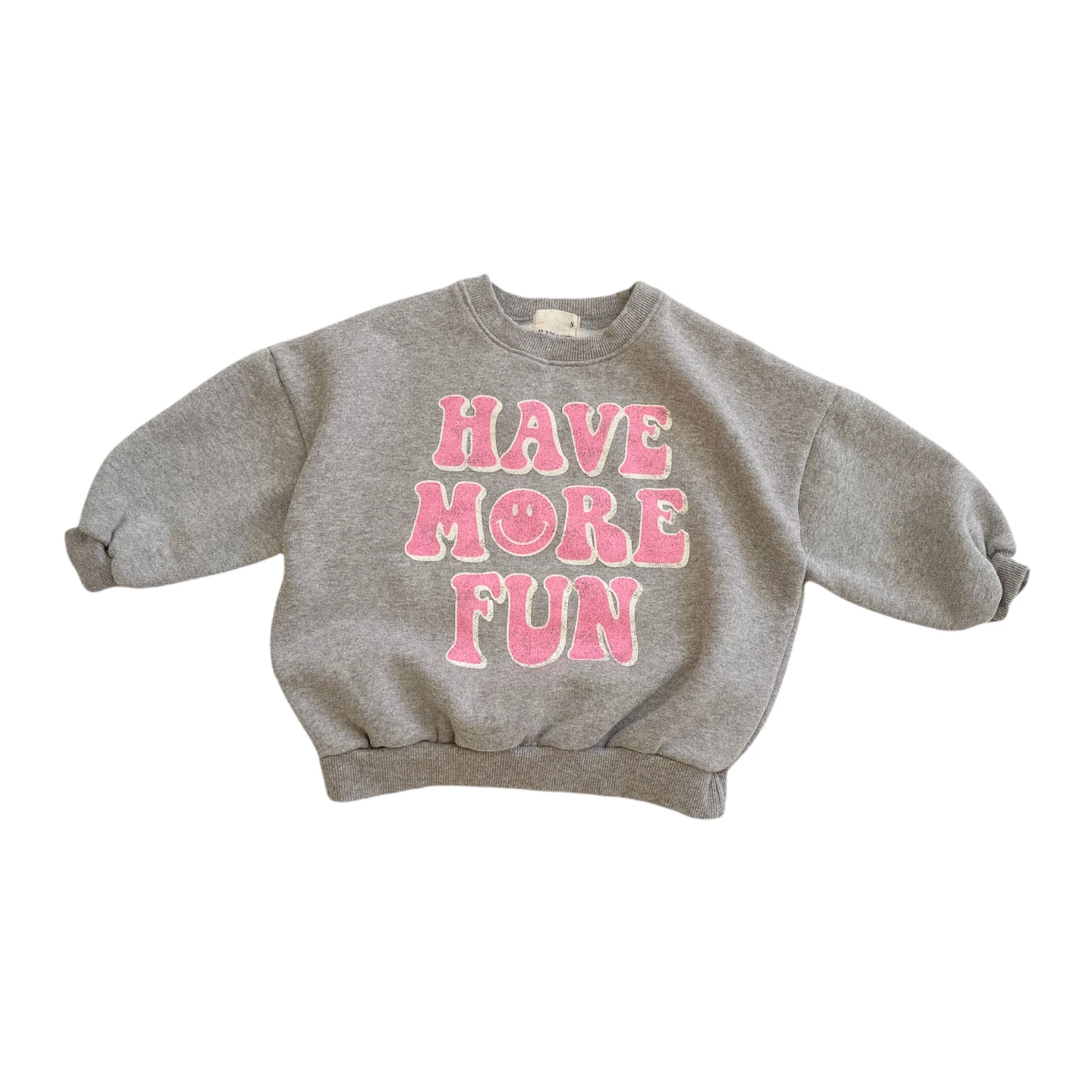 Mommy + Me crewneck oversized sweatshirt featuring “HAVE MORE FUN” graphic across the front.