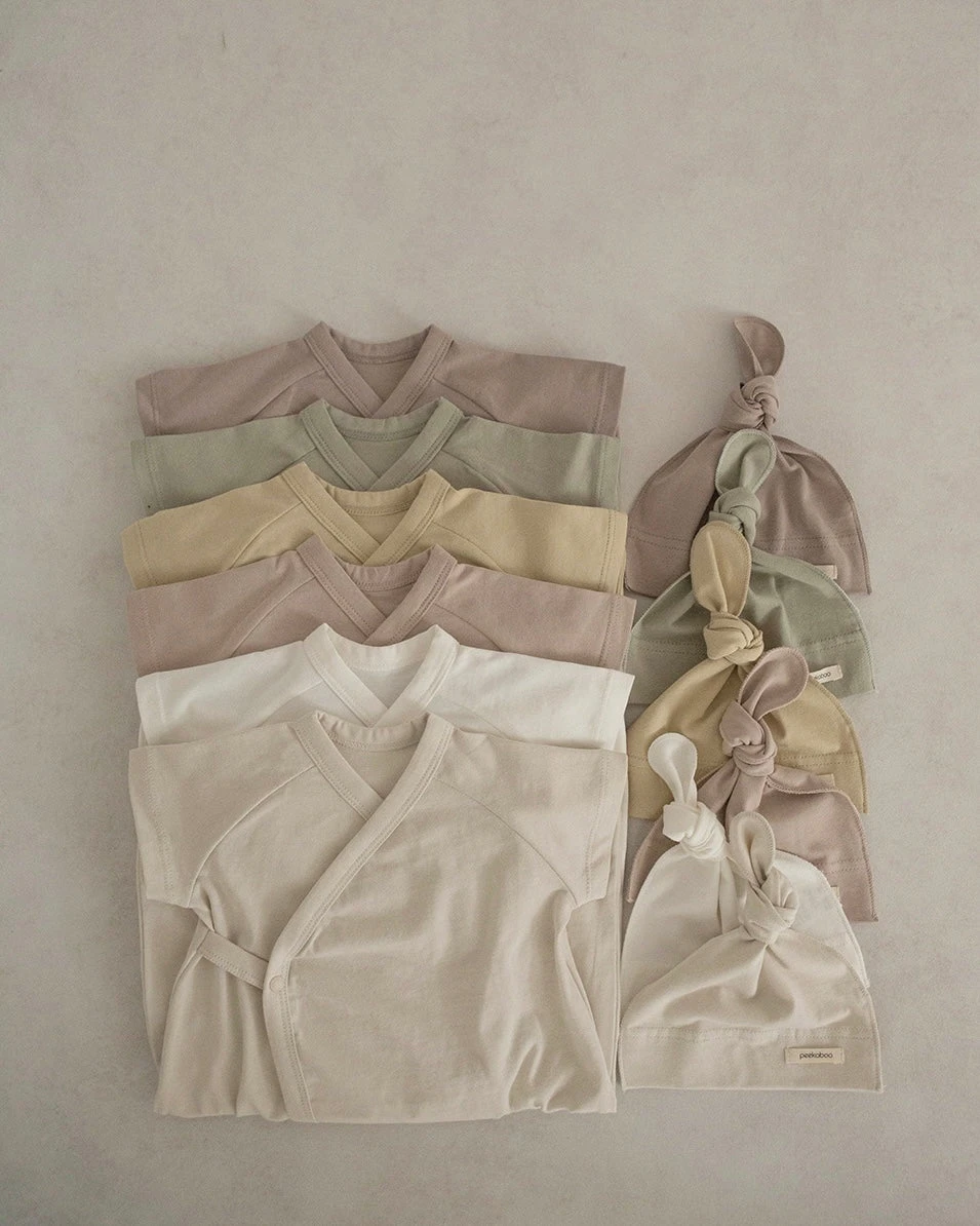 The sweetest kimono newborn onesie featuring a matching hat. The perfect going home outfit.