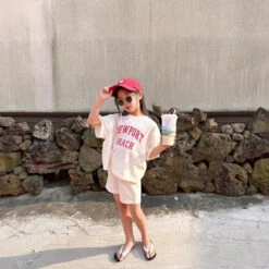 A perfectly oversized tee and matching shorties featuring Newport Beach printed across the front.