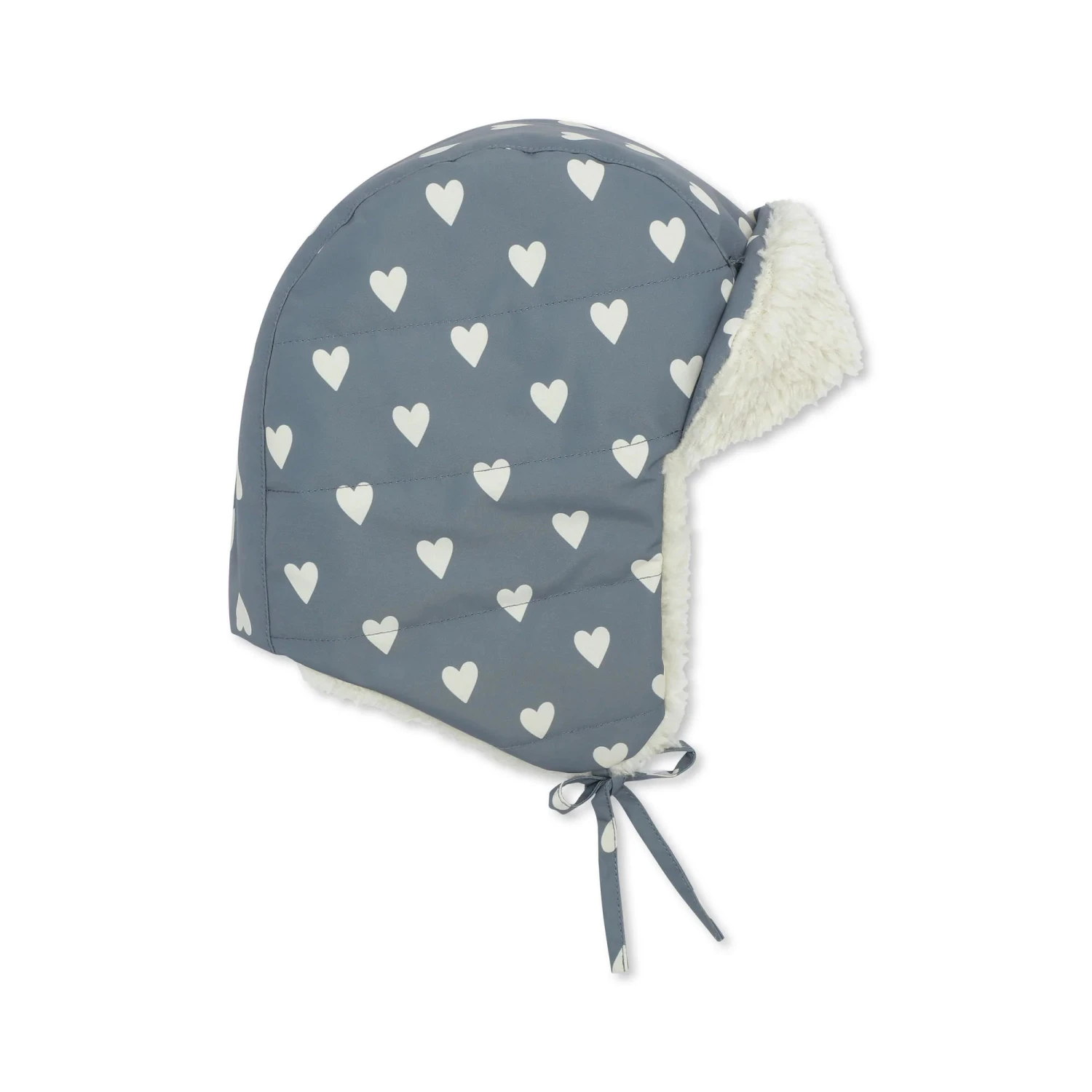 Breathable and waterproof snow hat with soft teddy polyester lining inside. The inside padding is THERMOLITE filling made with recycled fibers. The surface is treated with BIONIC FINISH ECO coating, a highly breathable and water-repellent impregnation. Closes with a button.