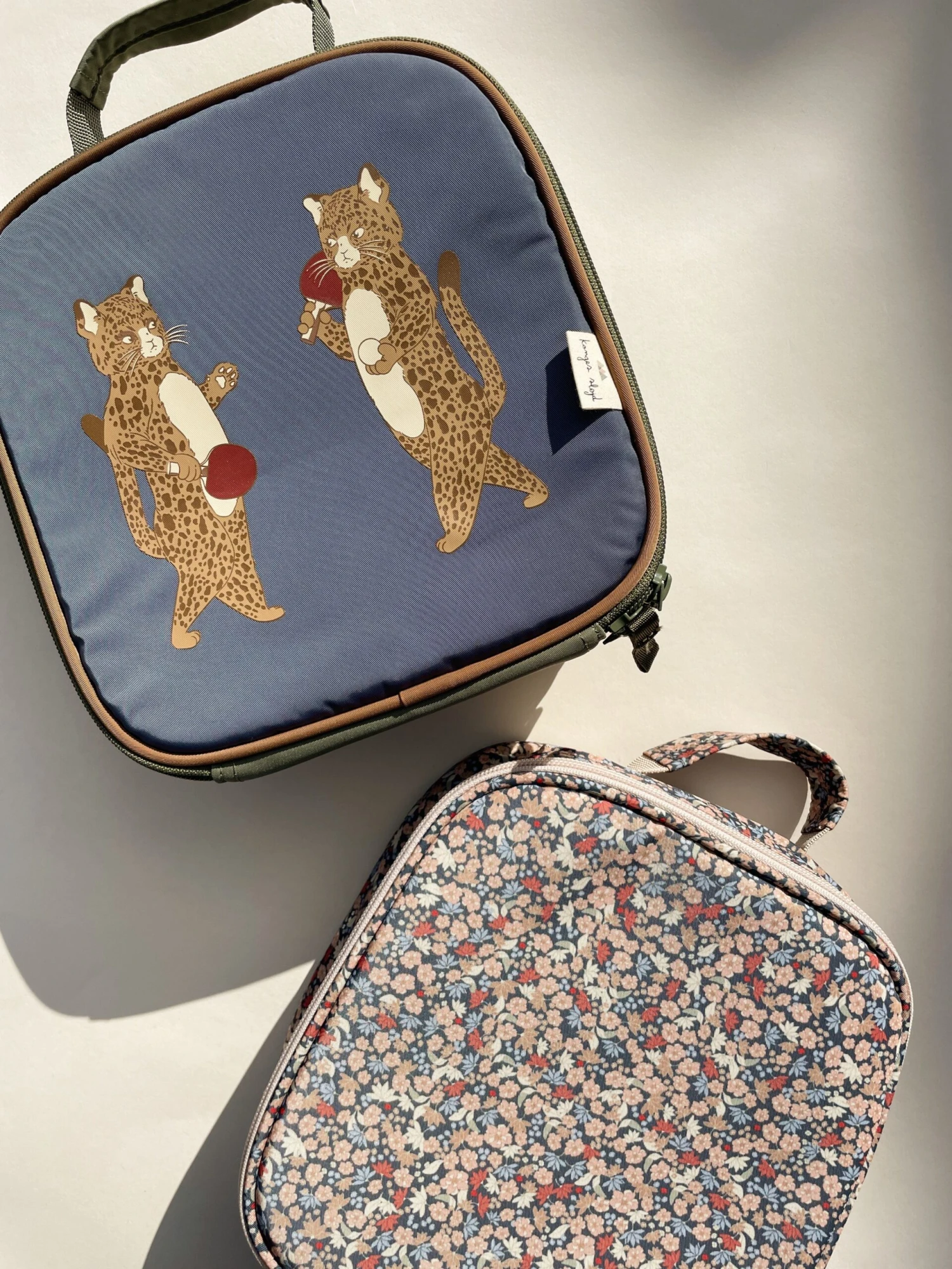 Zippered lunch bag made in recycled polyester designed with a solid shape. The bag features a padded handle and a spacious compartment with an elasticated inner mesh pocket made for cooling elements. The bag is designed with thermal insulation material inside. Konges Sløjd lunch box and drinking bottle both fit into the main compartment.