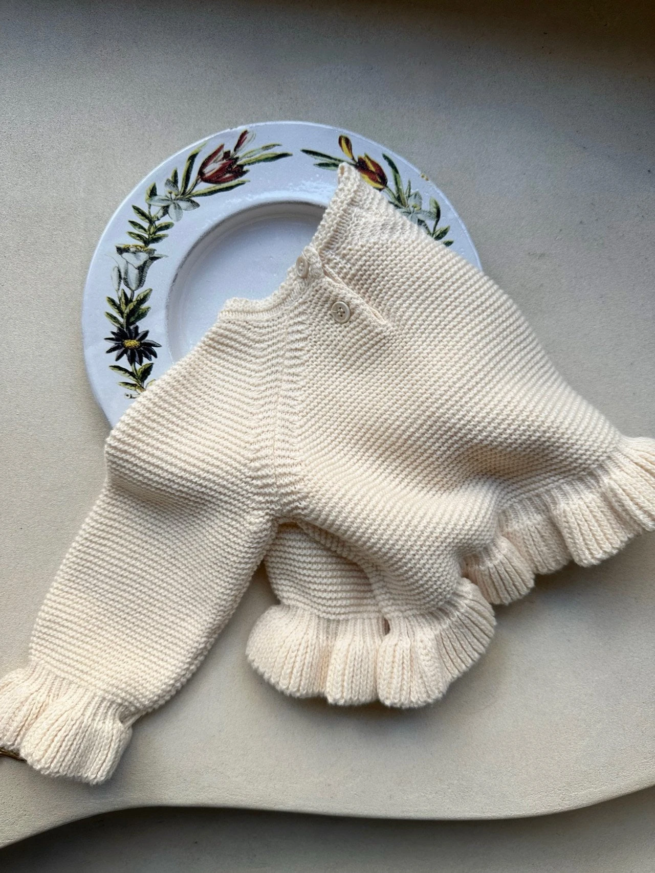 A cropped ruffled knit pullover to complete your look over a favorite top or dress.