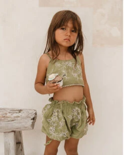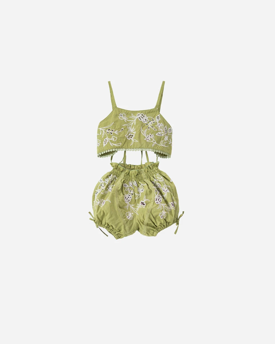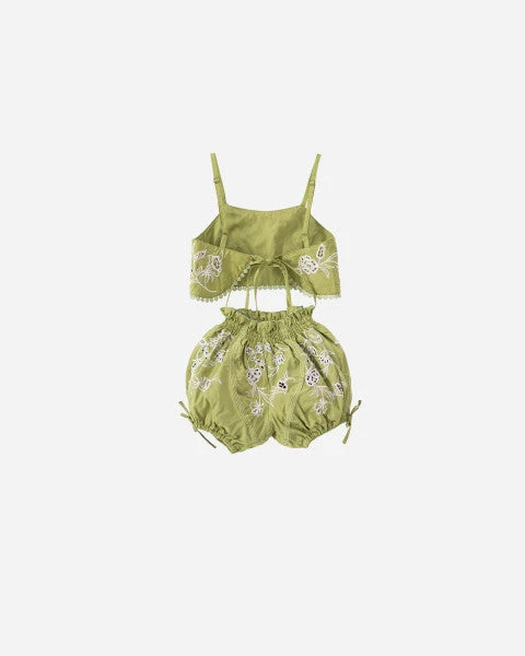 Surrender to the charm of this adorable tropical bikini sets. Embellished with an exquisite lace embroidery on its bikini top and bloomers, the piece will make a new style statement this summer.