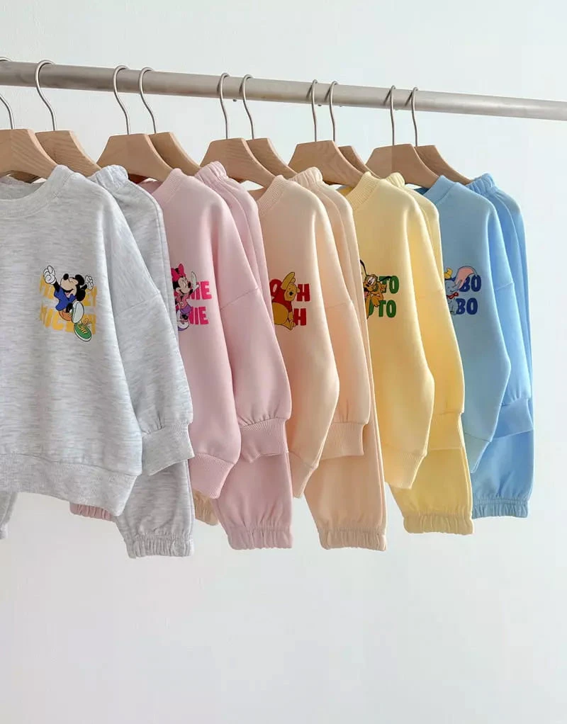 A lightweight crewneck and matching joggers set featuring your favorite Disney character.