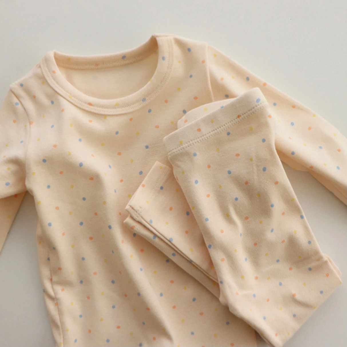 A buttery soft pastel polka dot pyjamas for your little one to lounge in comfort.