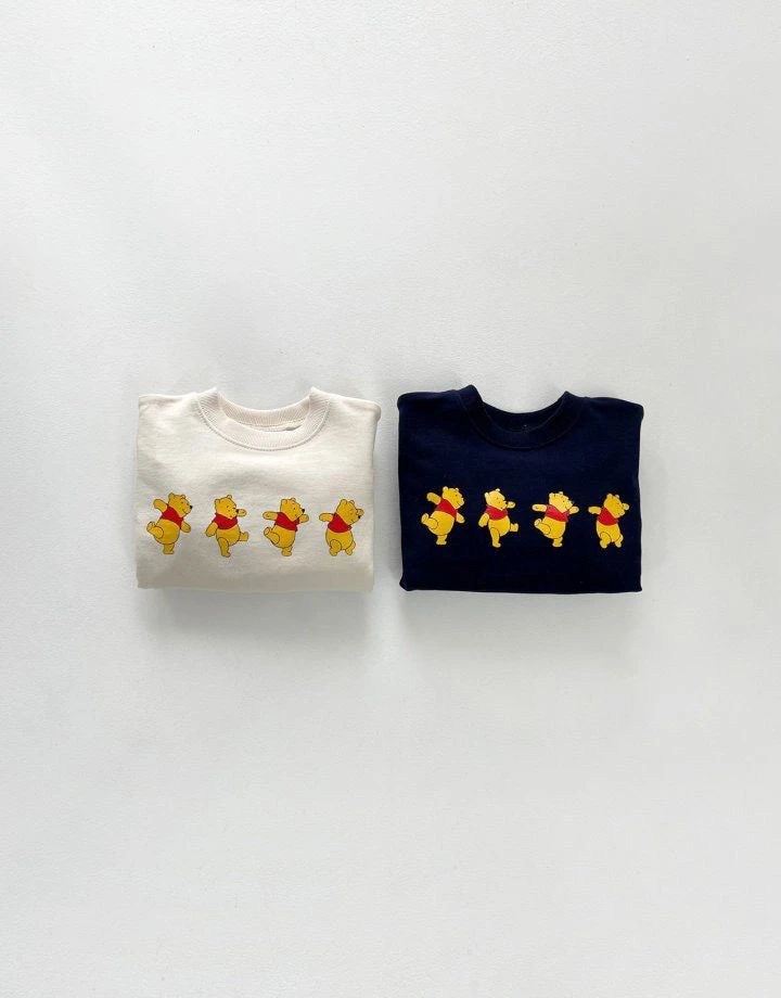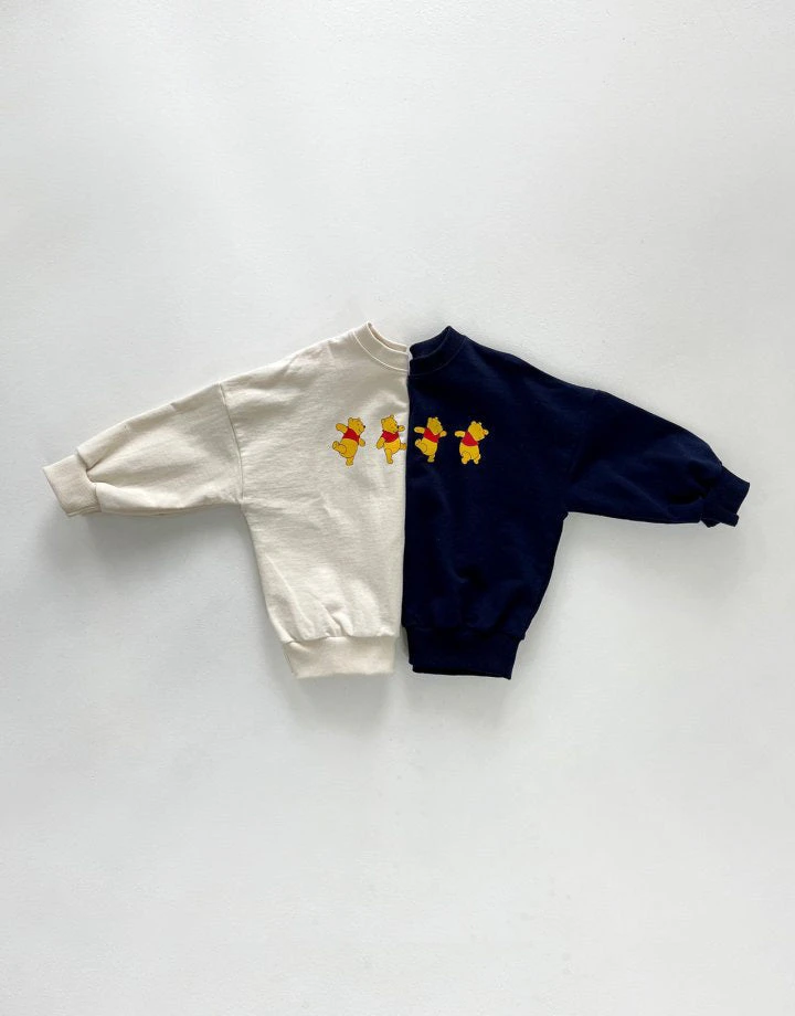 A perfectly oversized long sleeved lightweight sweatshirt featuring Pooh Bear graphic across the front.