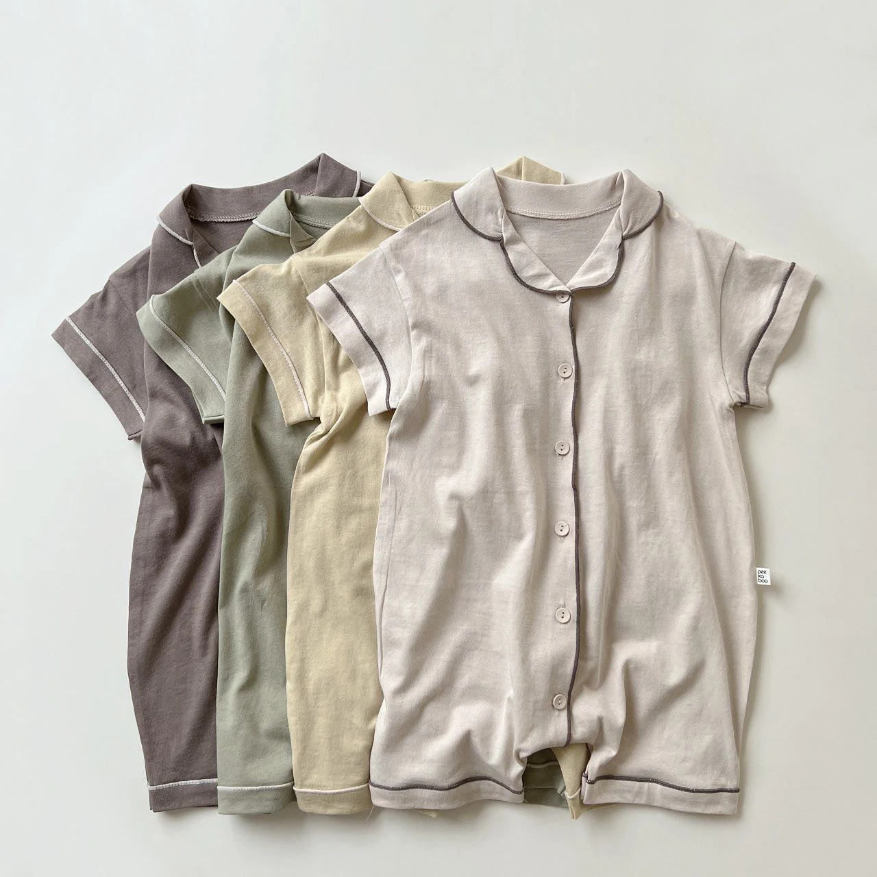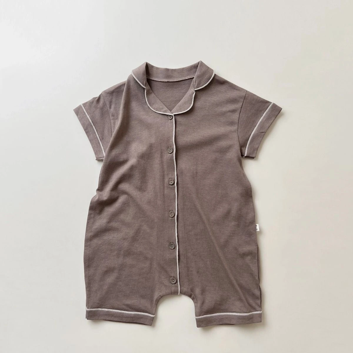 A buttery soft short sleeved romper featuring collared details.