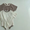 A buttery soft short sleeved romper featuring collared details.