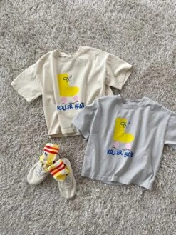 A comfy oversized boxy tee featuring a fun roller skate graphic on the front.