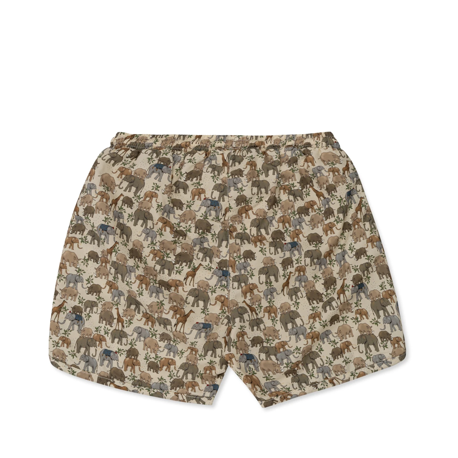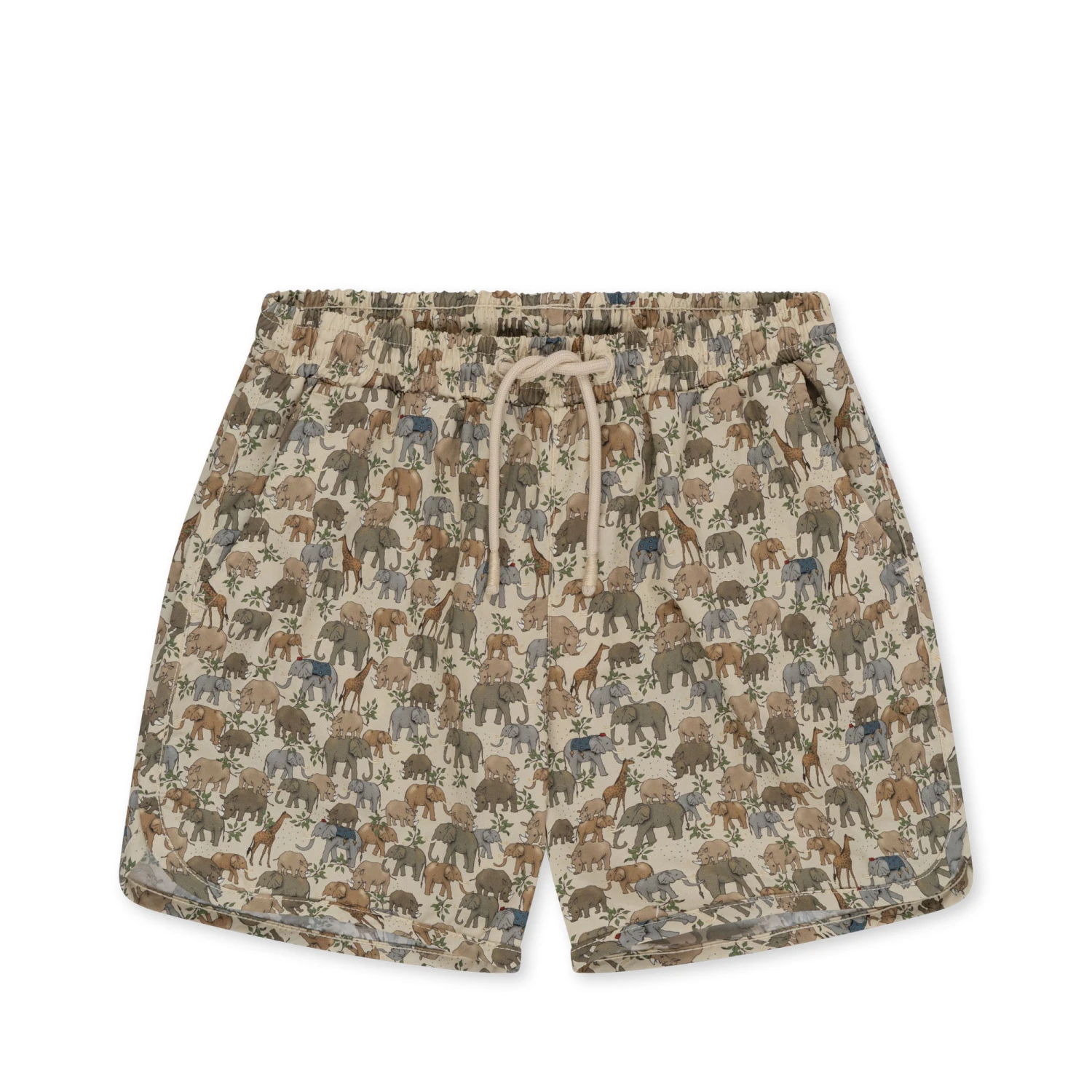 Swim shorts made from 61 percent recycled polyester and 39 percent polyester. Designed with front pockets, an elasticated waist and waistband. The swim shorts feature slits on the sides for added movability.