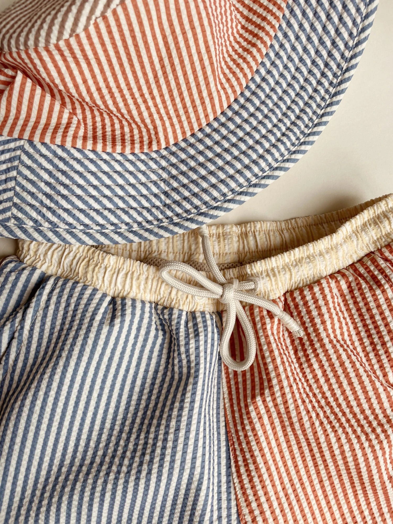 Swim shorts made from 61 percent recycled polyester and 39 percent polyester. Designed with front pockets, an elasticated waist and waistband. The swim shorts feature slits on the sides for added movability.